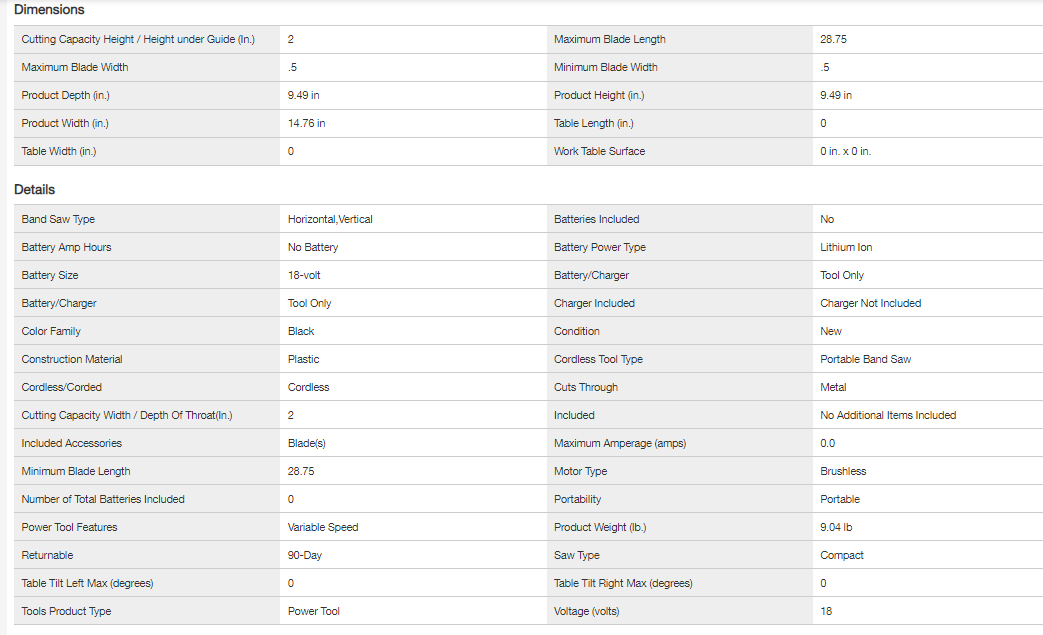 Makita XBP05ZB 18-Volt LXT Sub-Compact Lithium-Ion Brushless Cordless Band Saw (Tool-Only)