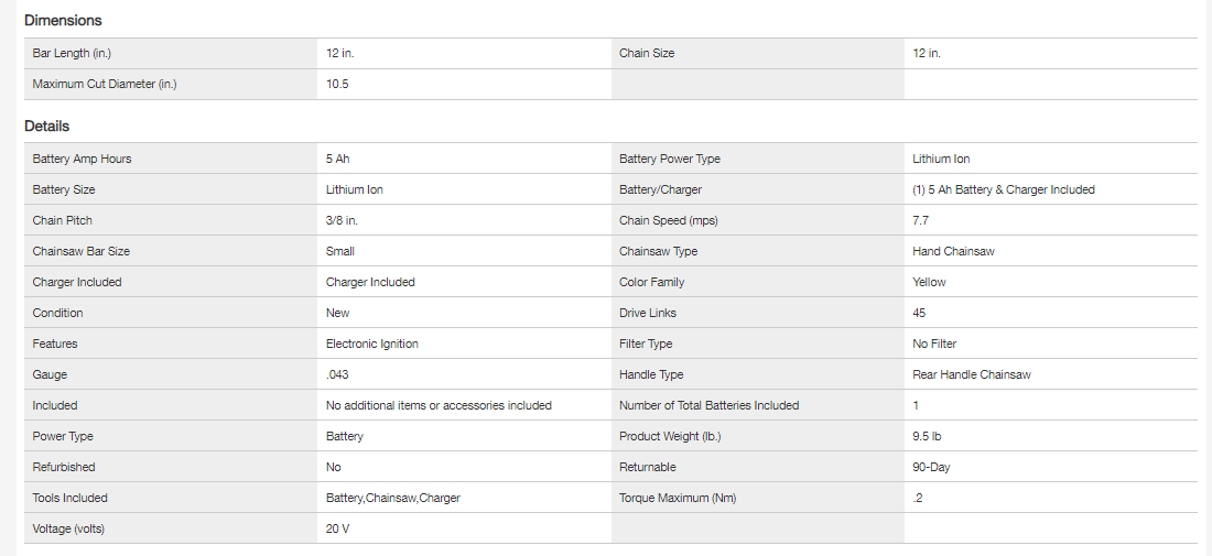 DEWALT DCCS620P1 12 in. 20V MAX Lithium-Ion Cordless Brushless Chainsaw with (1) 5.0Ah Battery and Charger Included