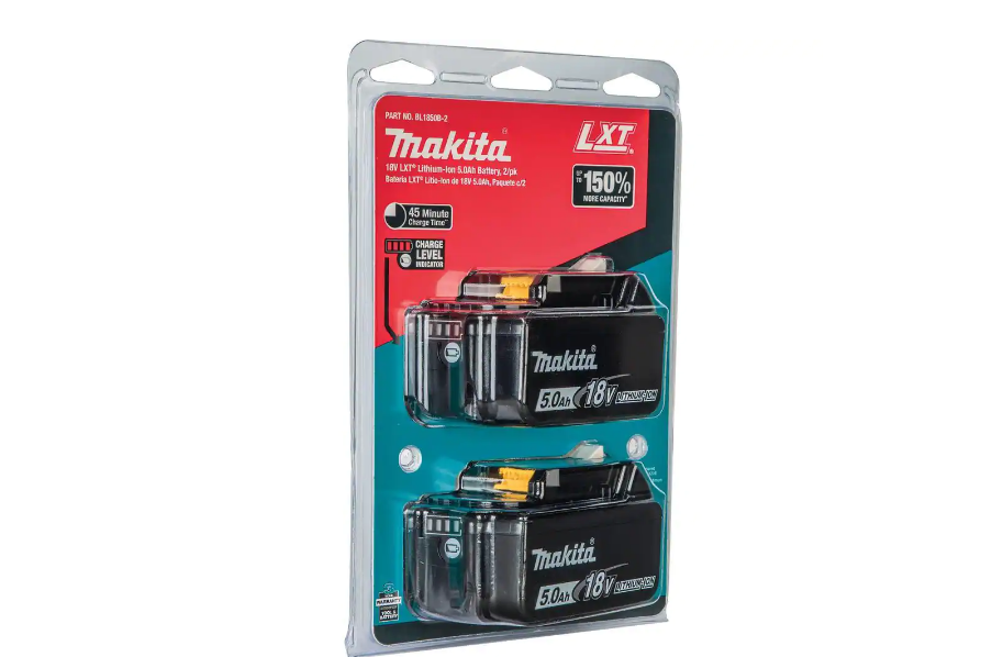 Makita BL1850B-2 18-Volt LXT Lithium-Ion High Capacity Battery Pack 5.0 Ah with LED Charge Level Indicator (2-Pack)