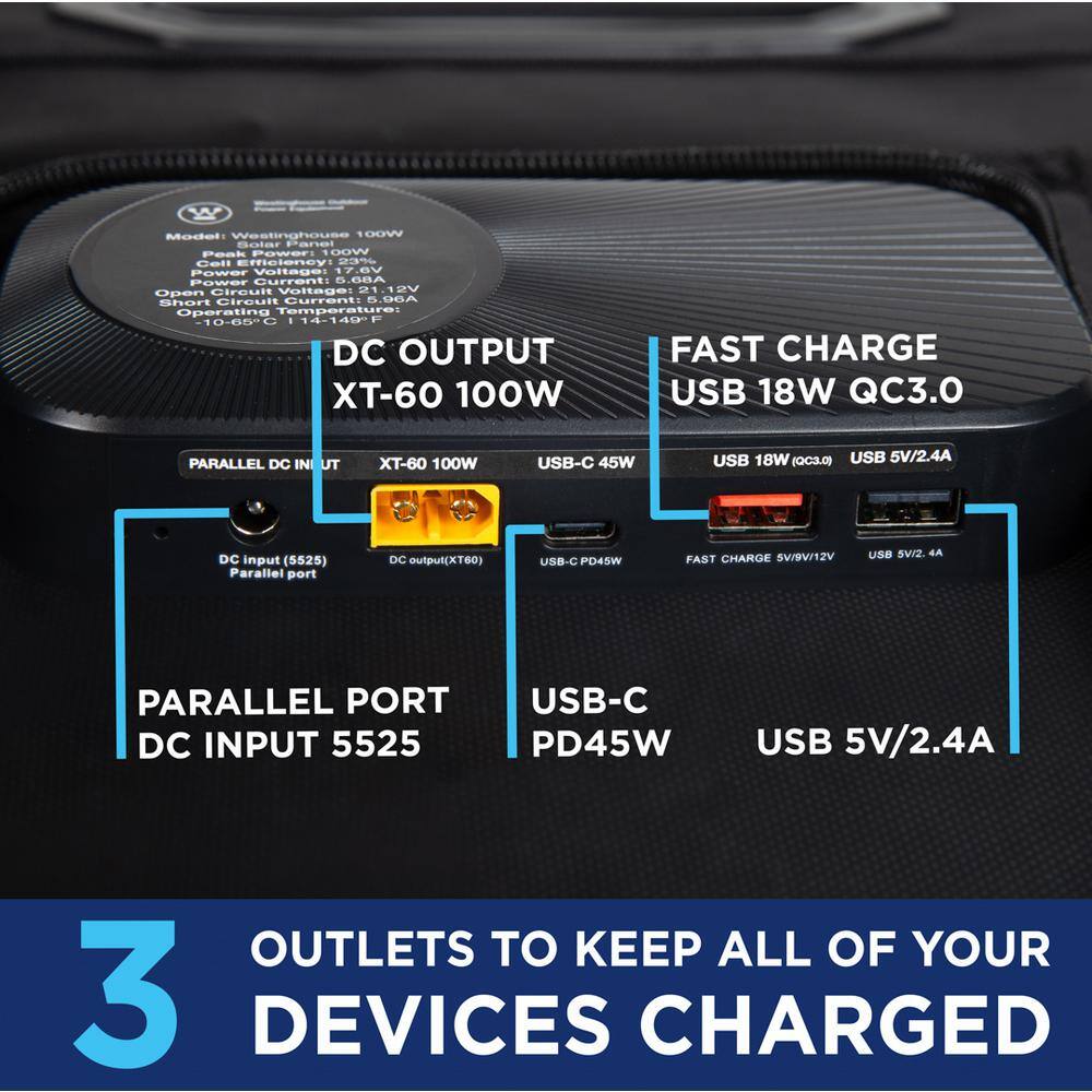 Westinghouse WSolar100p WSolar100p Portable 100W Solar Panel for iGen160s. iGen200s. iGen300s. iGen600s. and iGen1000s Portable Power Stations