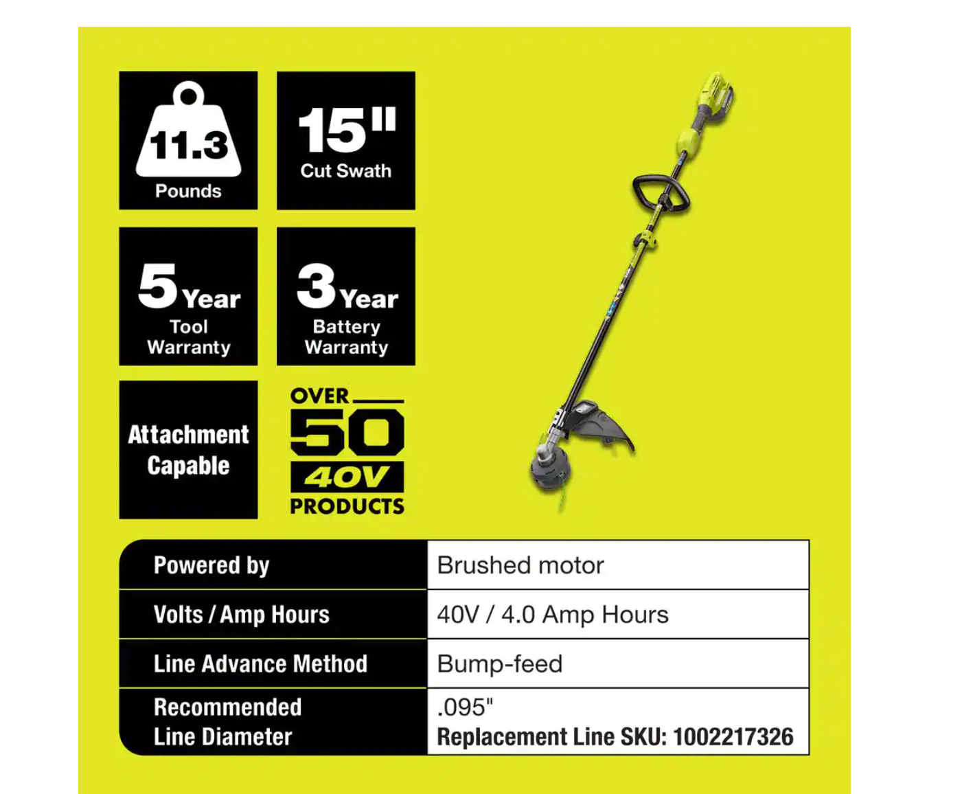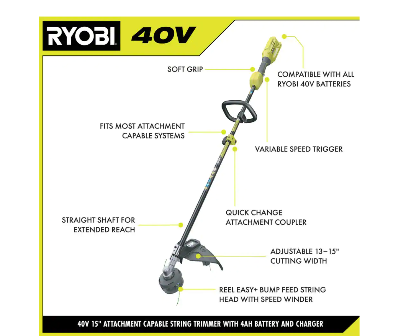 RYOBI RY40250-EDG 40V Expand-It Cordless Attachment Capable Trimmer/Edger with 4.0 Ah Battery and Charger