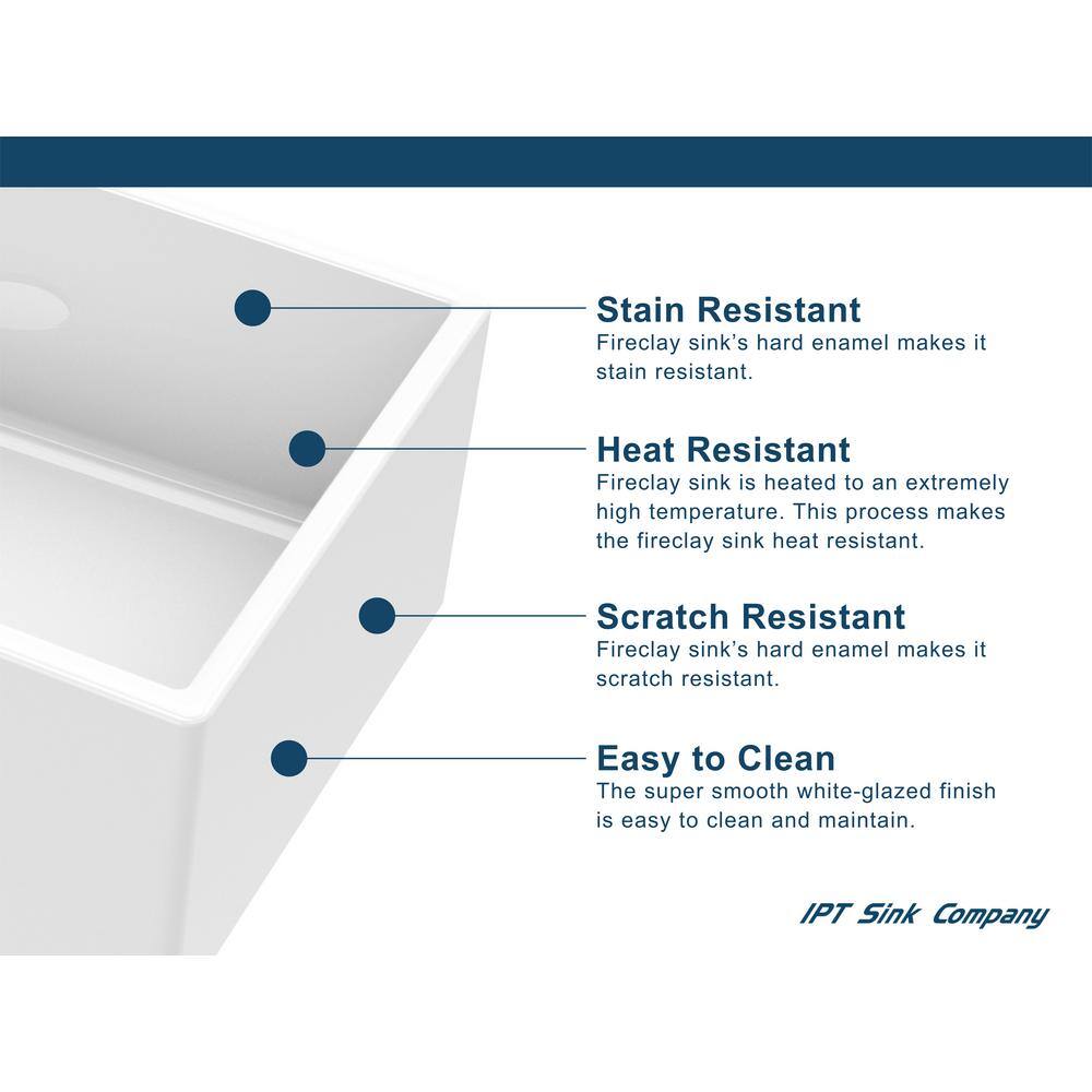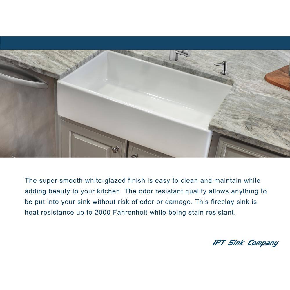 IPT Sink Company 1003335398 Farmhouse Apron Front Fireclay 30 in. Single Bowl Kitchen Sink in White