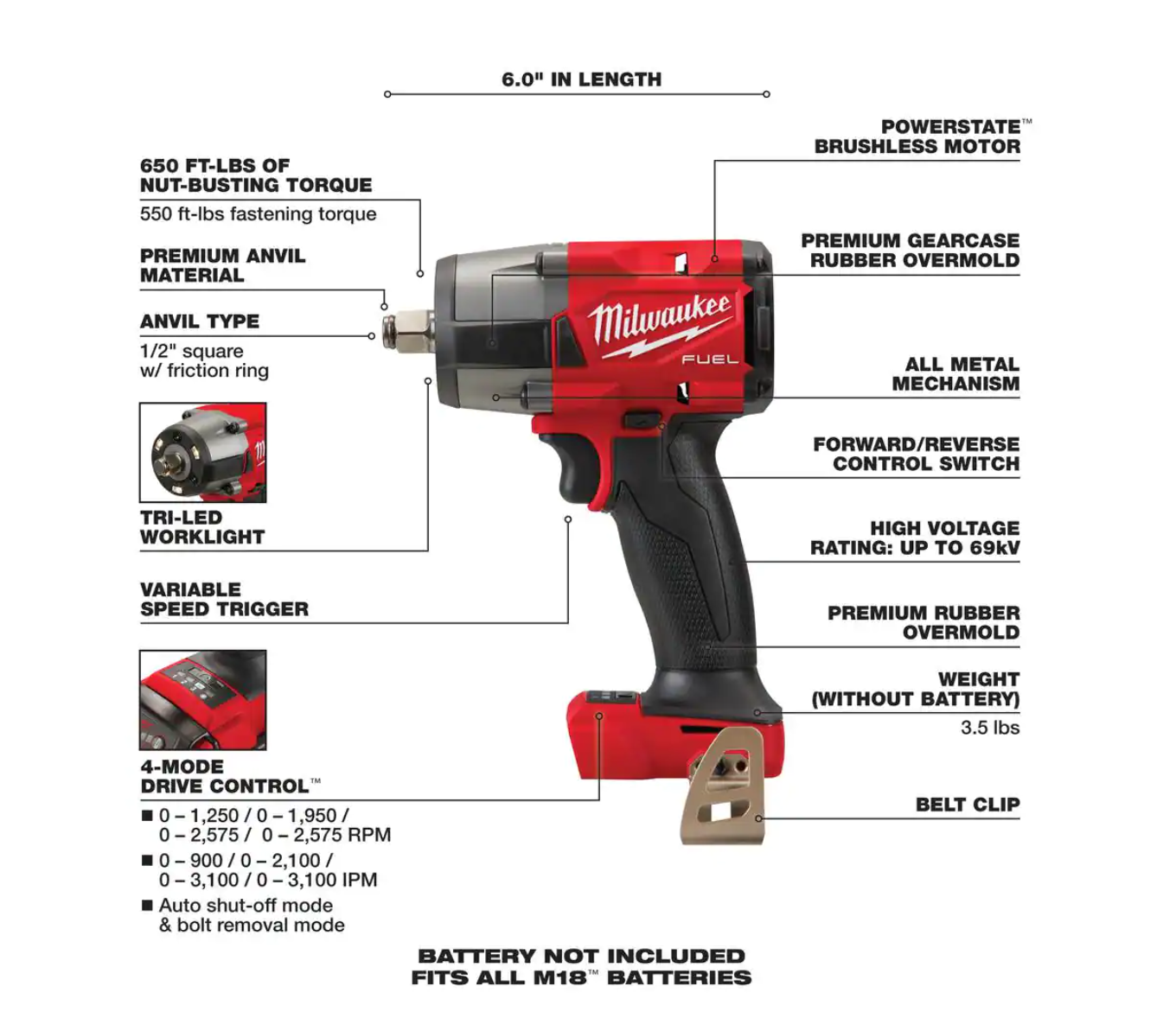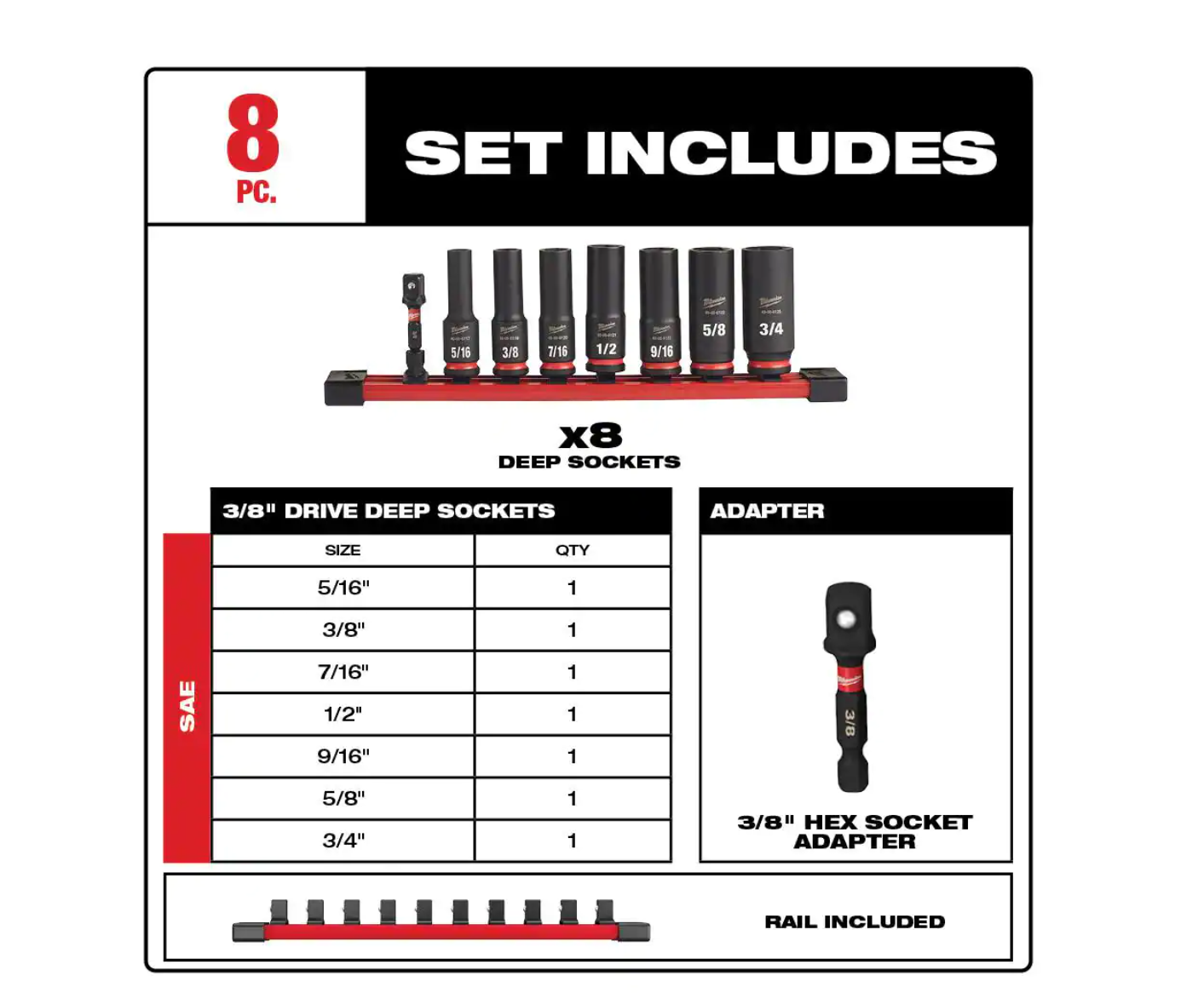 Milwaukee 2962-20-49-66-7024 M18 FUEL GEN-2 18V Lithium-Ion Mid Torque Brushless Cordless 1/2 in. Impact Wrench with Socket Set (8-Piece)