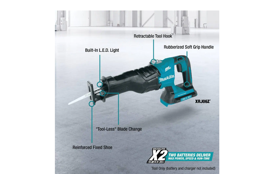Makita XRJ06Z 18-Volt X2 (36V) LXT Lithium-Ion Brushless Cordless Reciprocating Saw (Tool Only)