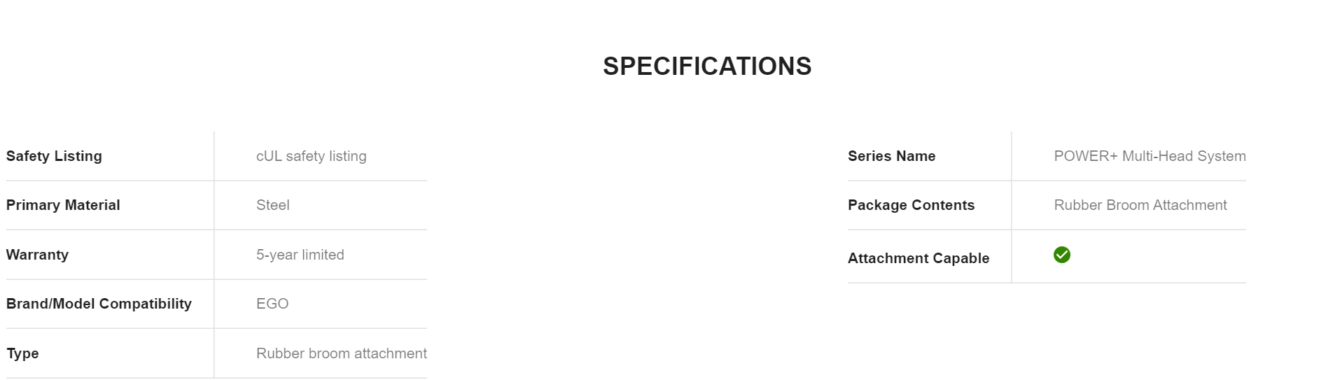 EGO RBA2100 POWER+ Multi-Head System Rubber Broom Attachment