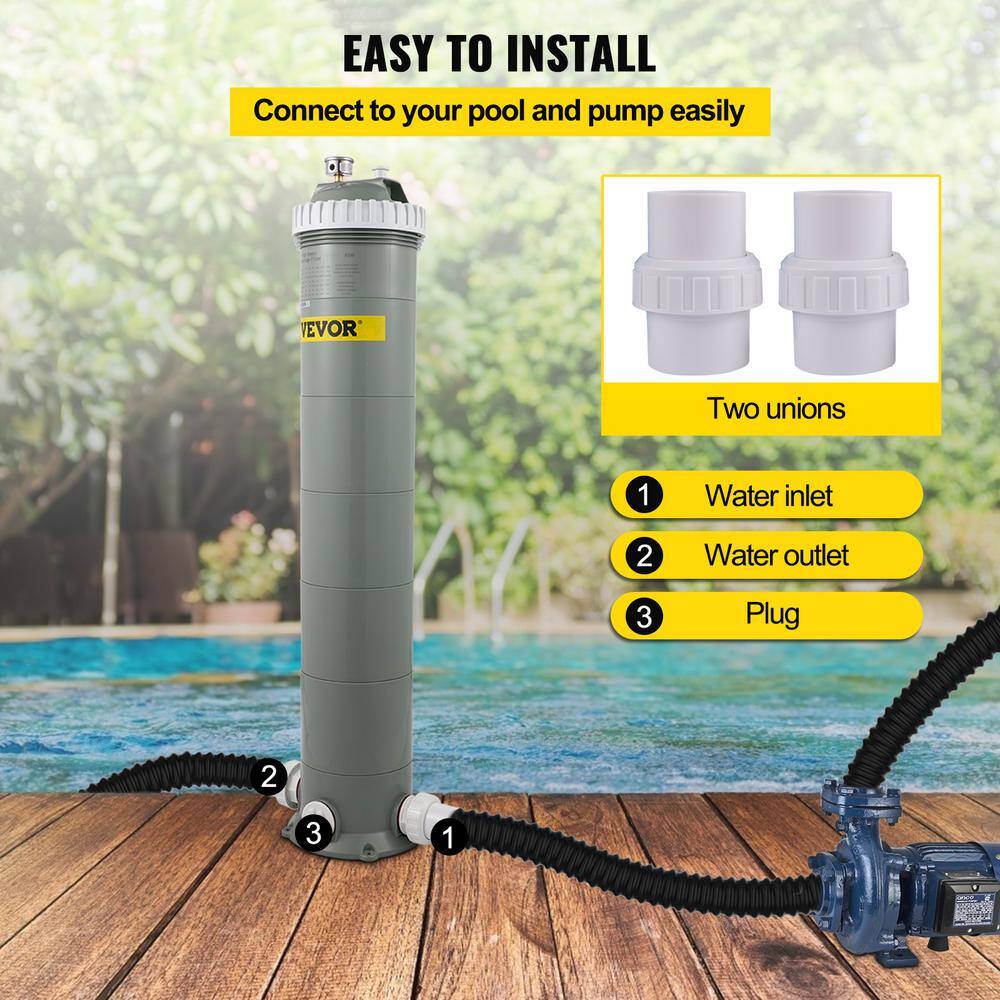VEVOR YCGLQZQXBL175INFVV0 Pool Cartridge Filter 8.9 in. Dia Above Ground Swimming Pool Filter System 194 sq. ft. Replacement Filter Cartridge