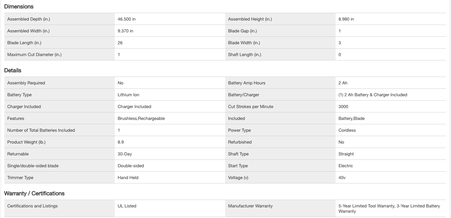 RYOBI RY40640VNM 40V HP Brushless 26 in. Cordless Battery Hedge Trimmer with 2.0 Ah Battery and Charger