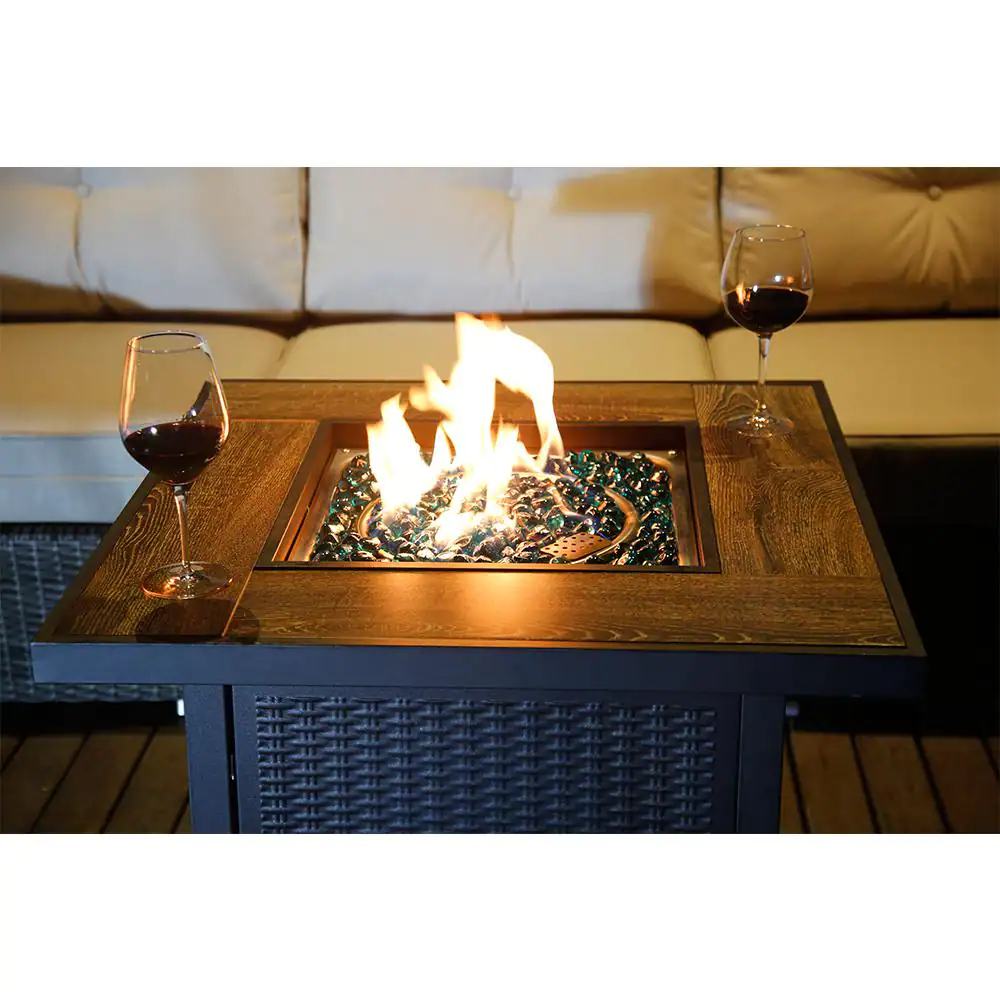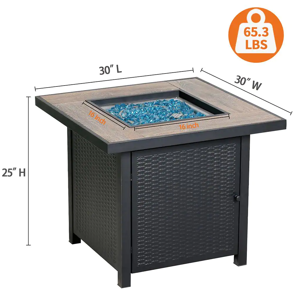 HeatMaxx SRGF11626 30 in. 50.000 BTU Propane Gas Fire Pit Table. Square Gas Firepits with Fire Glass for Outside