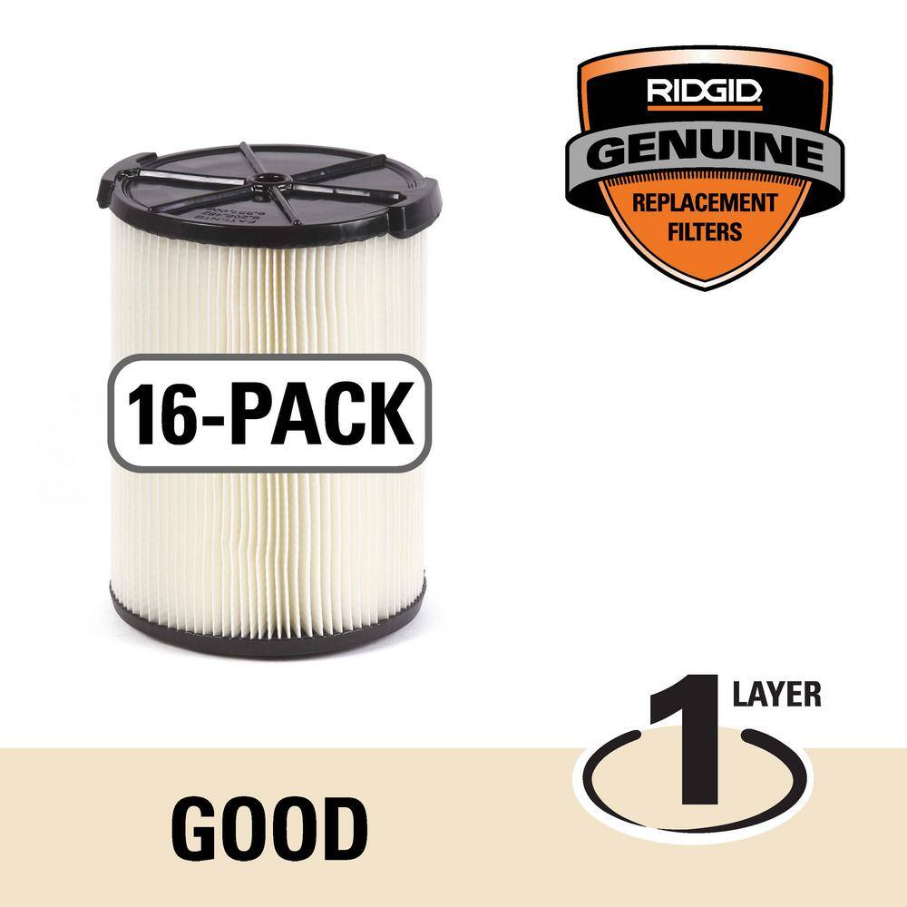RIDGID VF4200C 1-Layer Standard Pleated Paper Filter for Most 5 Gallon and Larger RIDGID Wet/Dry Shop Vacuums (16-Pack)