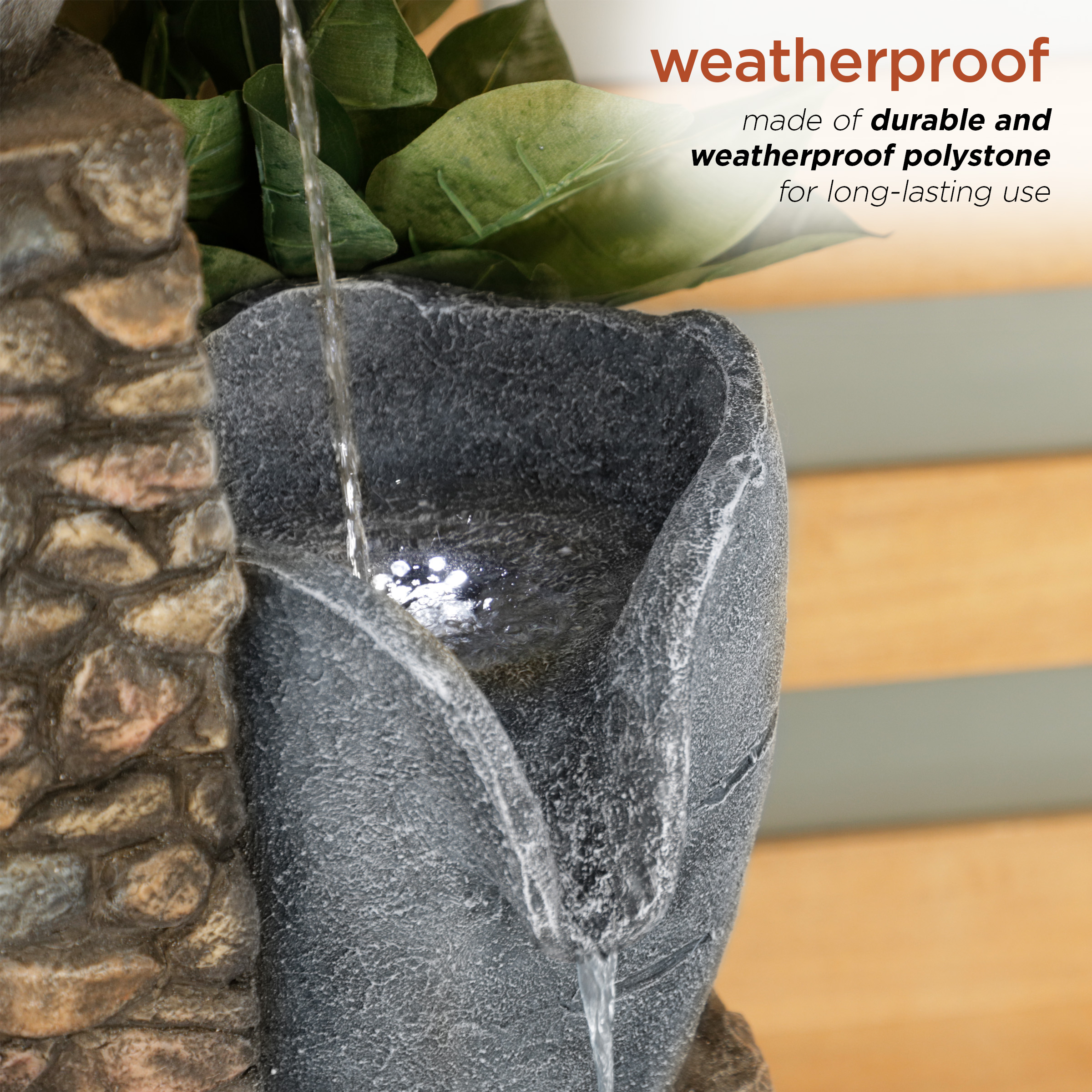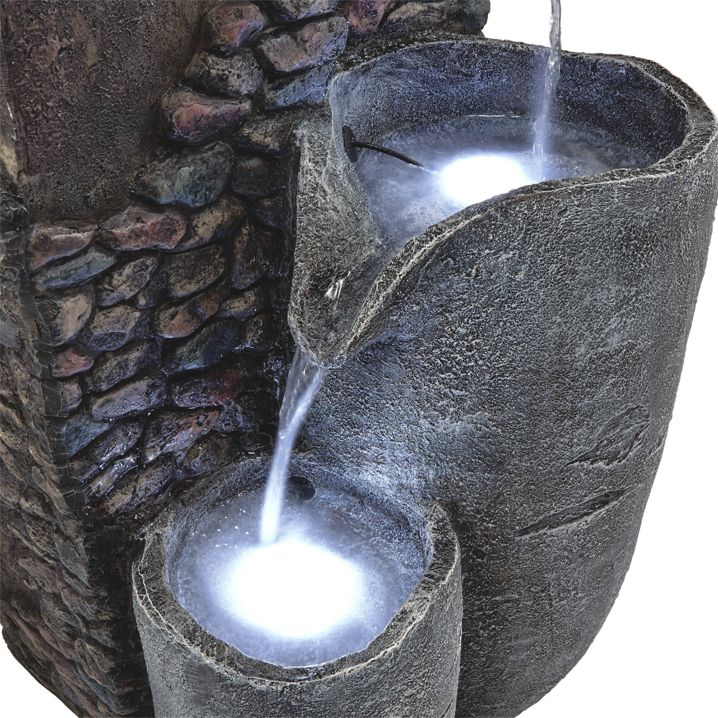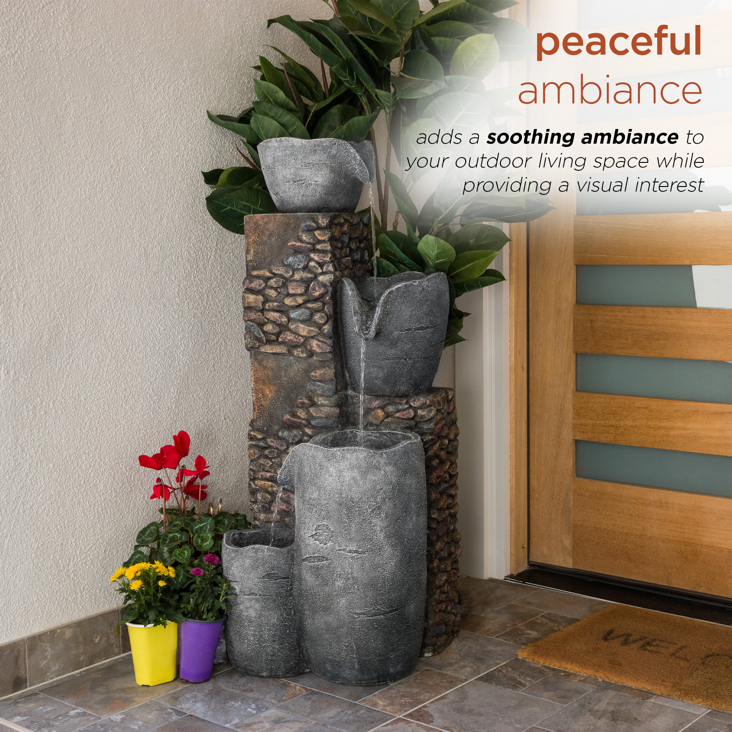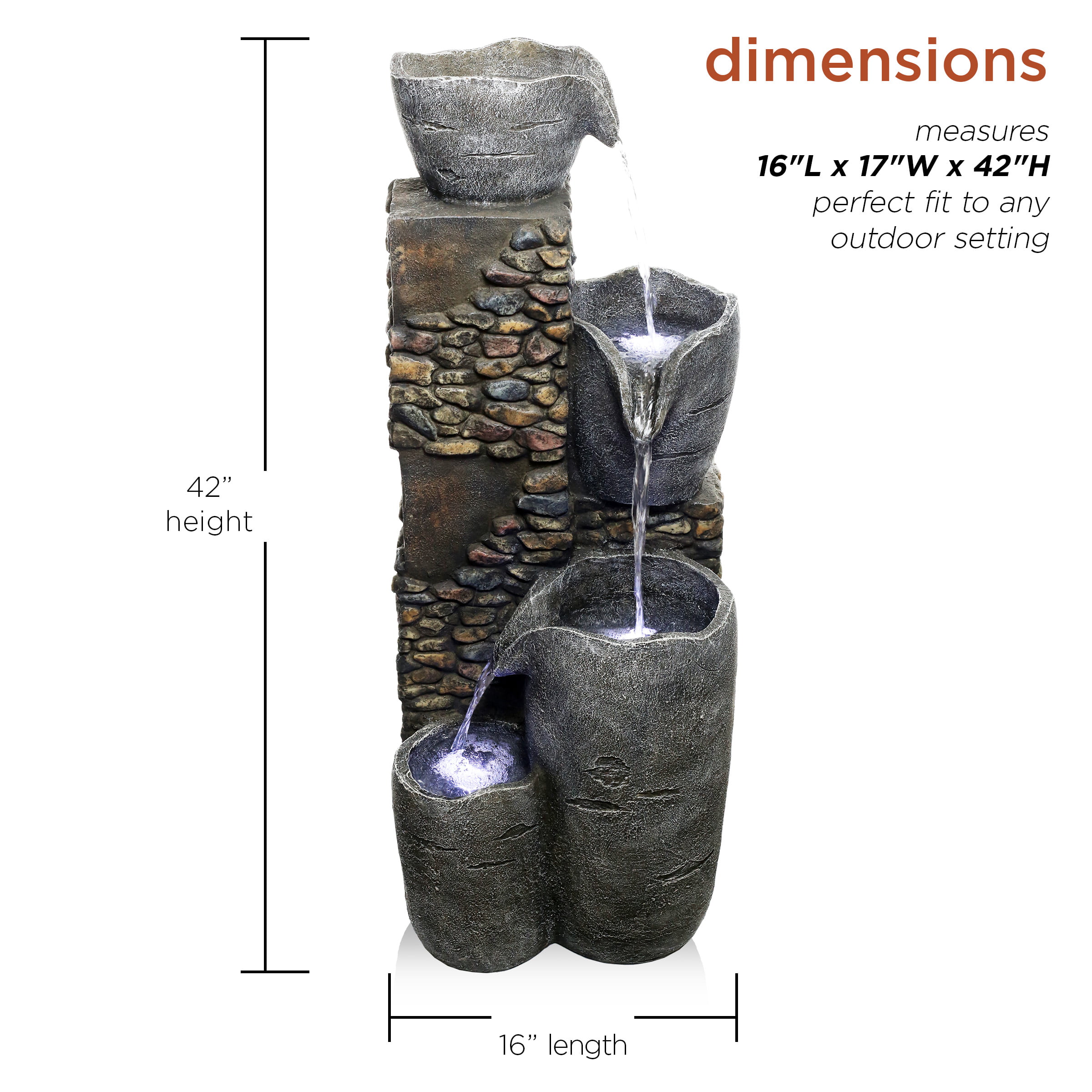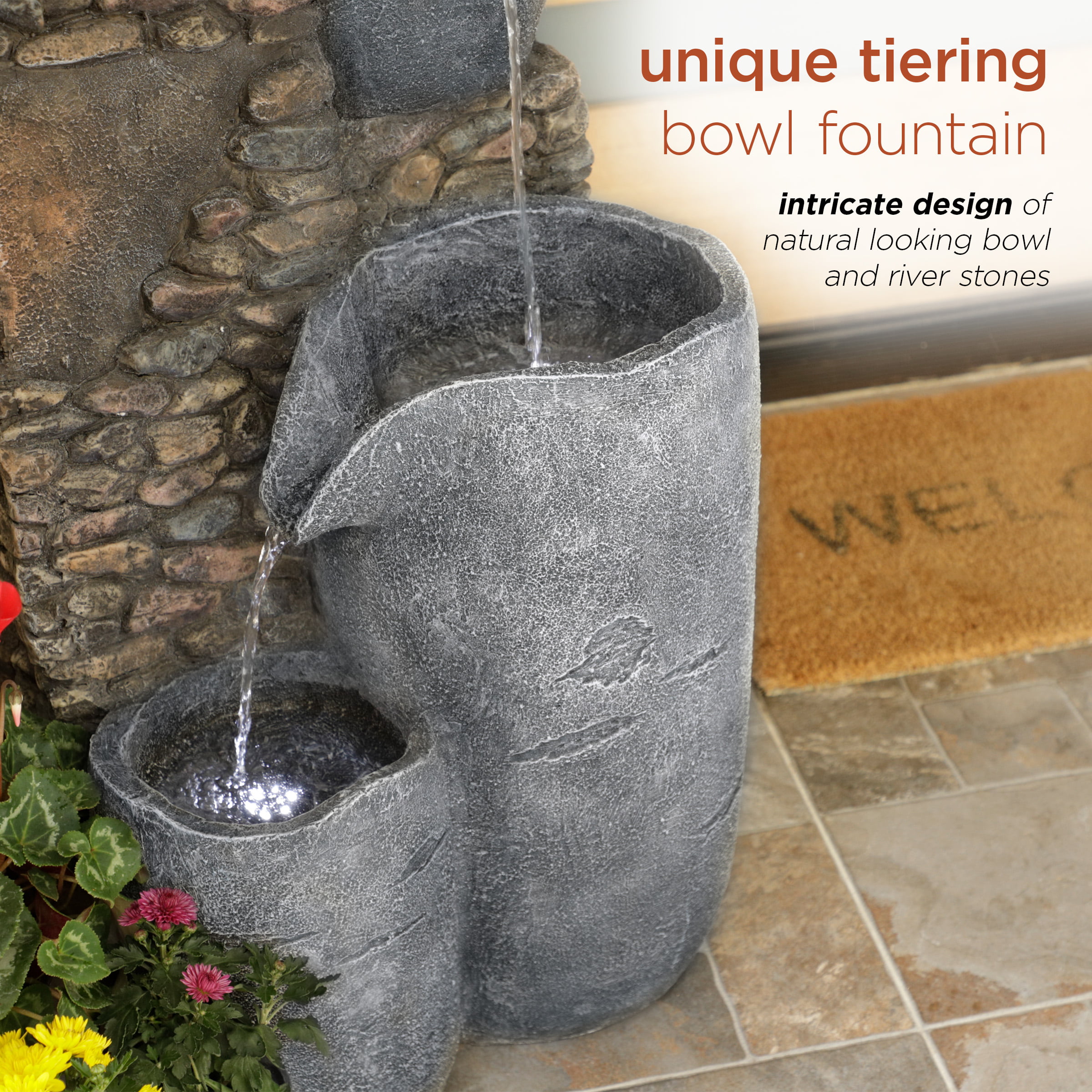 Alpine Corporation 42″ Tall Outdoor 4 Tier Stone Bowl Fountain with LED Lights
