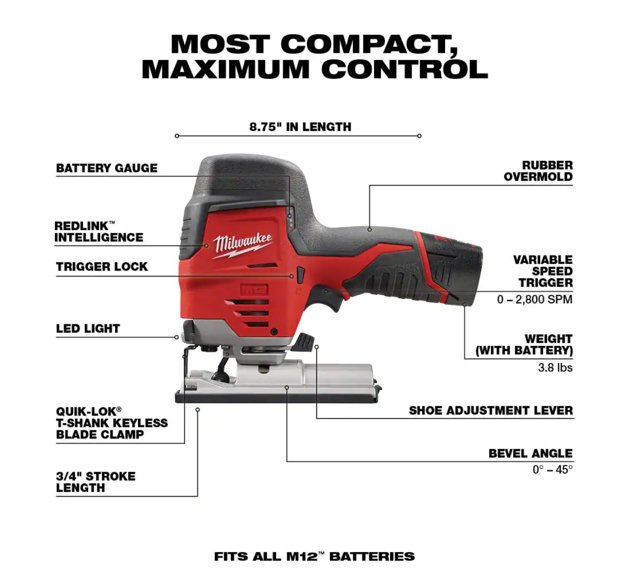 Milwaukee 2415-20-2445-20-48-11-2460 M12 12V Lithium-Ion Cordless 3/8 in. Right Angle Drill with M12 Cordless Jig Saw and 6.0 Ah XC Battery Pack