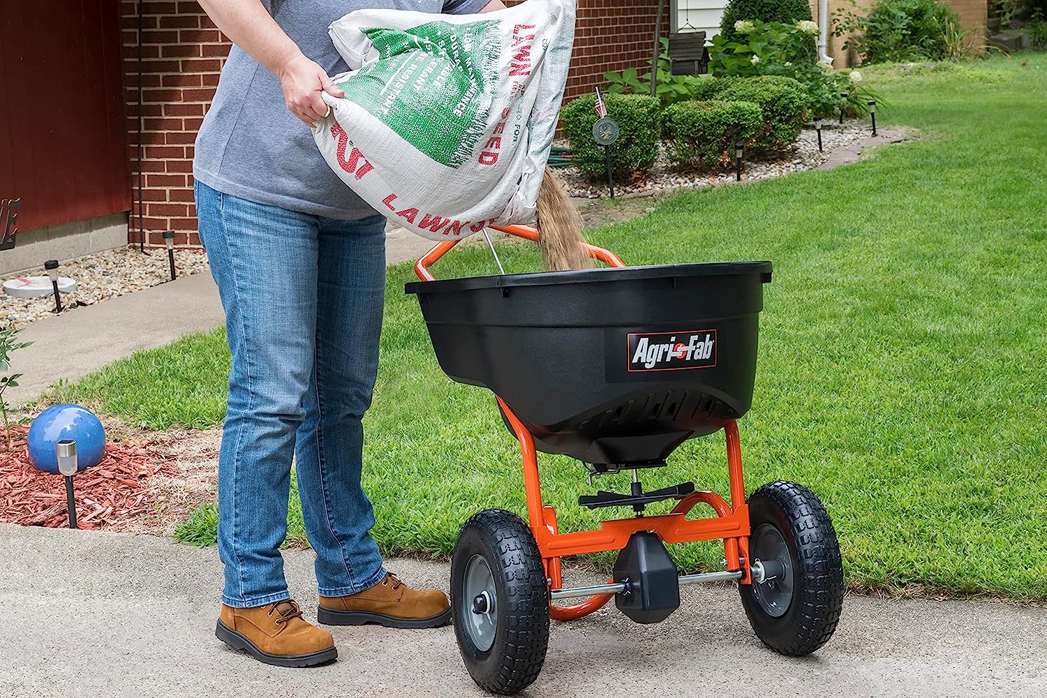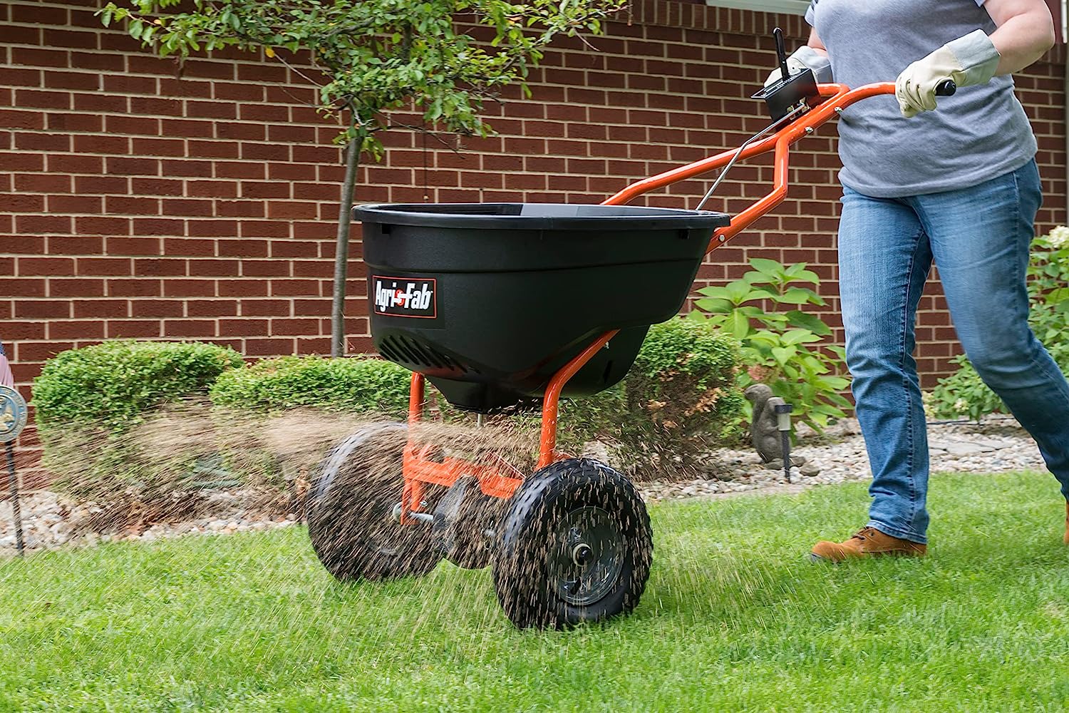 John Deere LP31340L 50 lbs. Push Broadcast Spreader with Pneumatic Tires and Hopper Cover