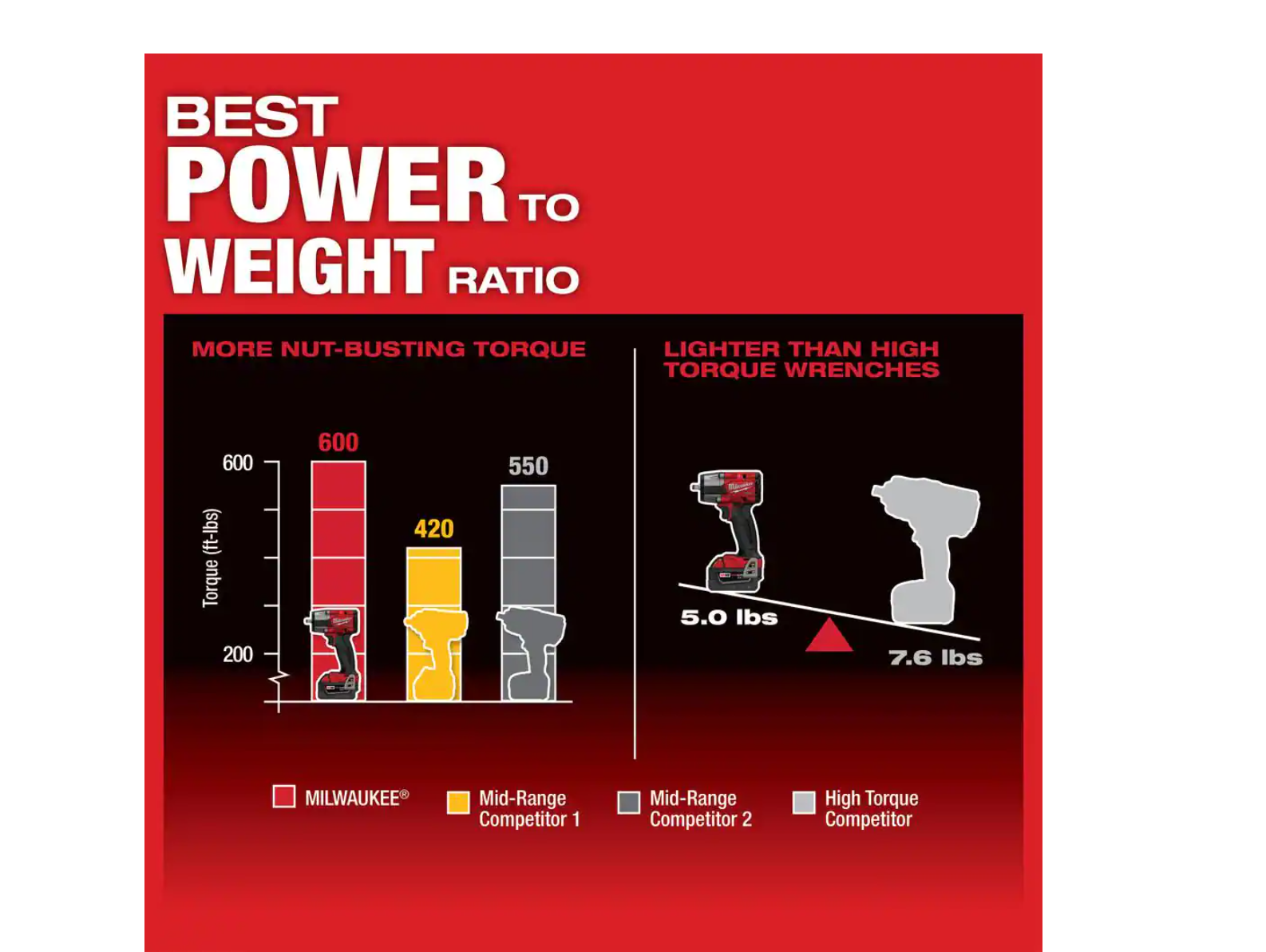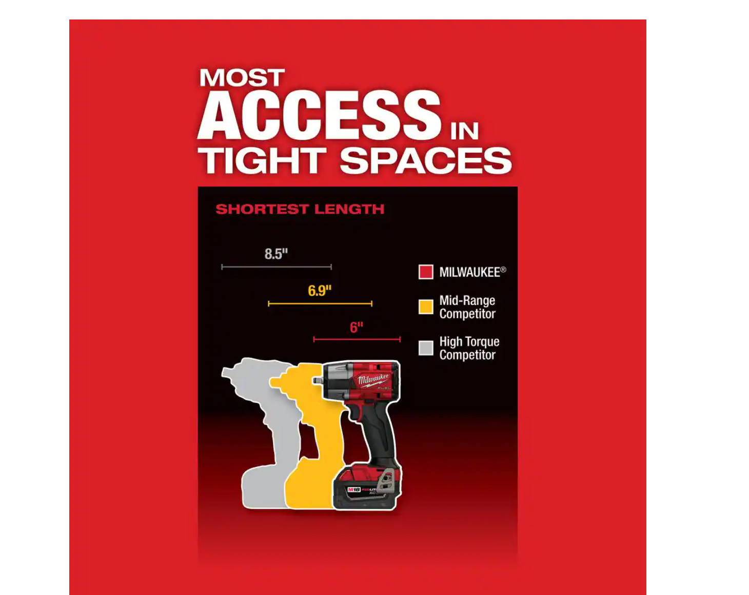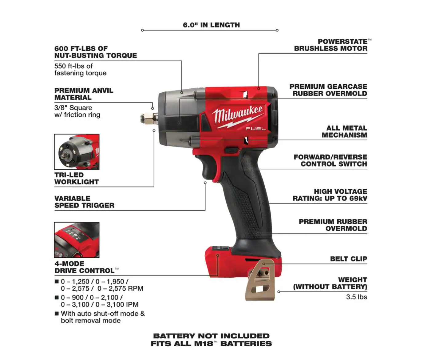 Milwaukee 2960-20-49-16-2960 M18 FUEL 18V Lithium-Ion Mid Torque Brushless Cordless 3/8 in. Impact Wrench with Friction Ring. Protective Boot
