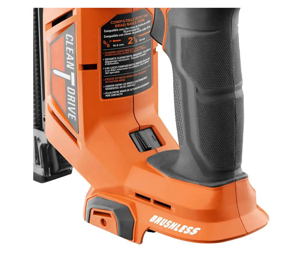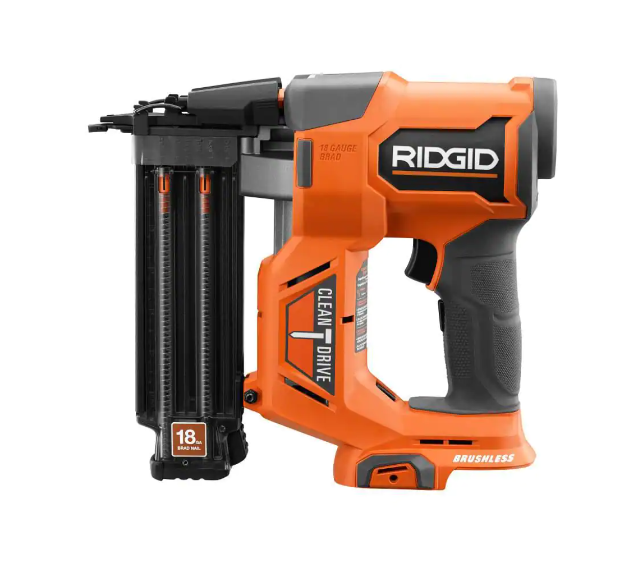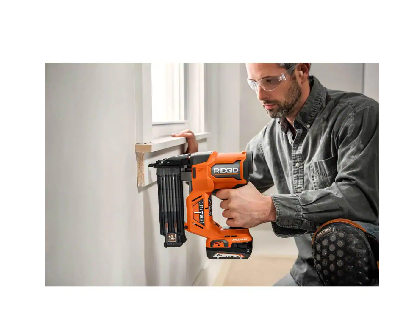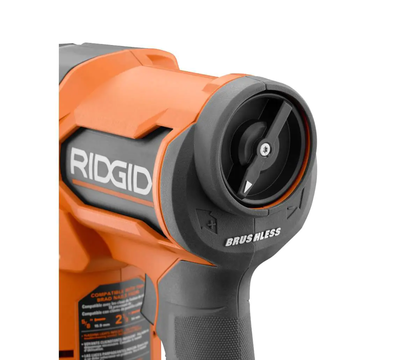 RIDGID R09891K 18V Brushless Cordless 18-Gauge 2-1/8 in. Brad Nailer with CLEAN DRIVE Technology with 2.0 Ah Battery and Charger