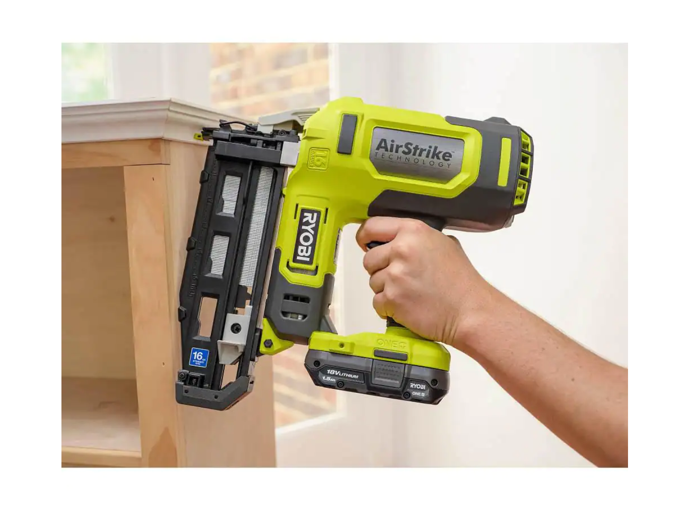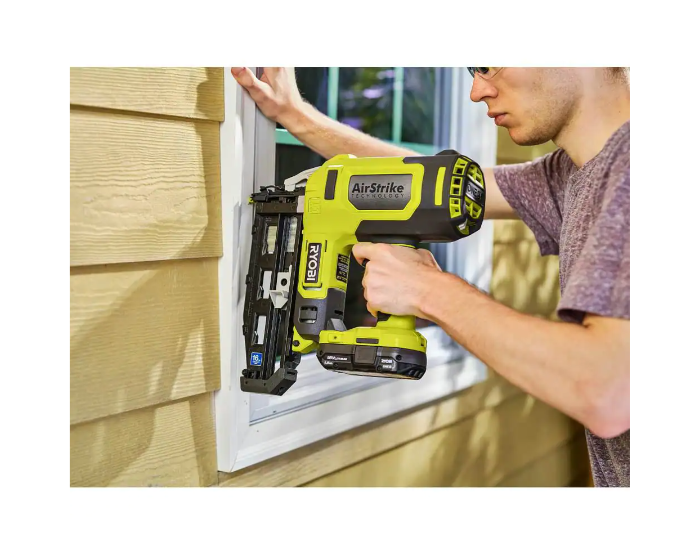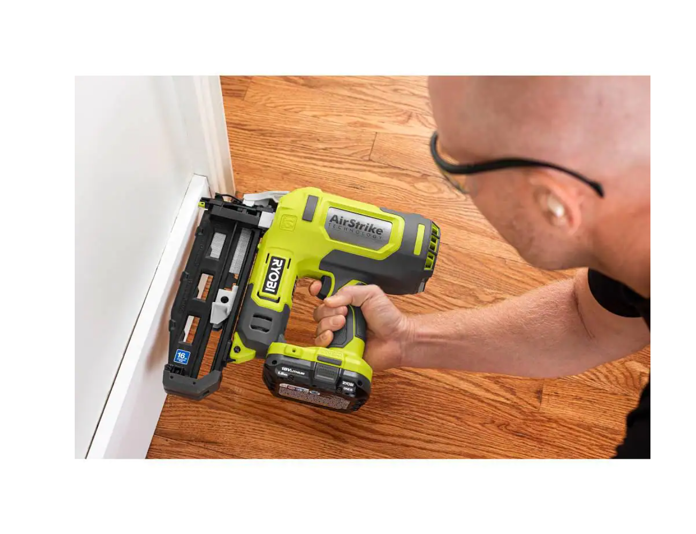 RYOBI P326KN ONE+ 18V 16-Gauge Cordless AirStrike Finish Nailer with 1.5 Ah Battery and Charger