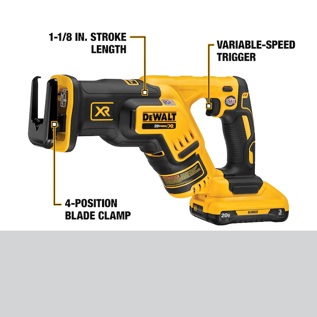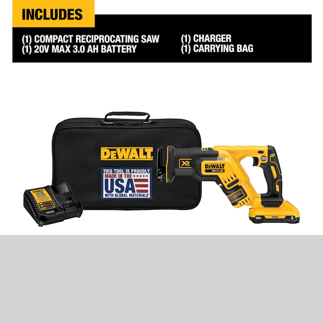 DEWALT DCS367L1 20-Volt MAX XR Cordless Brushless Compact Reciprocating Saw with (1) 20-Volt Battery 3.0Ah & Charger