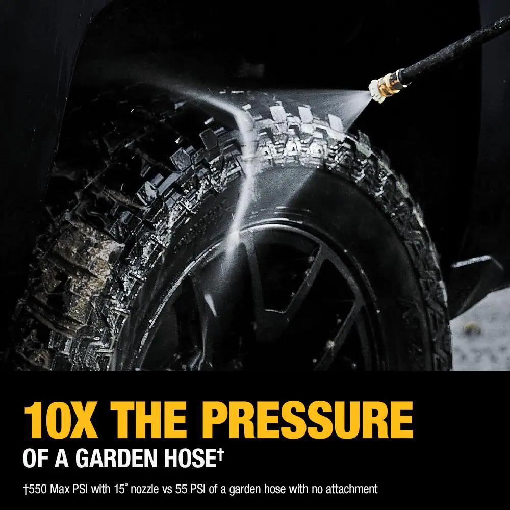 DEWALT DCPW550P1 20V MAX 550 PSI 1.0 GPM Cold Water Cordless Electric Power Cleaner with 4 Nozzles. (1) 5.0 Ah Battery and Charger