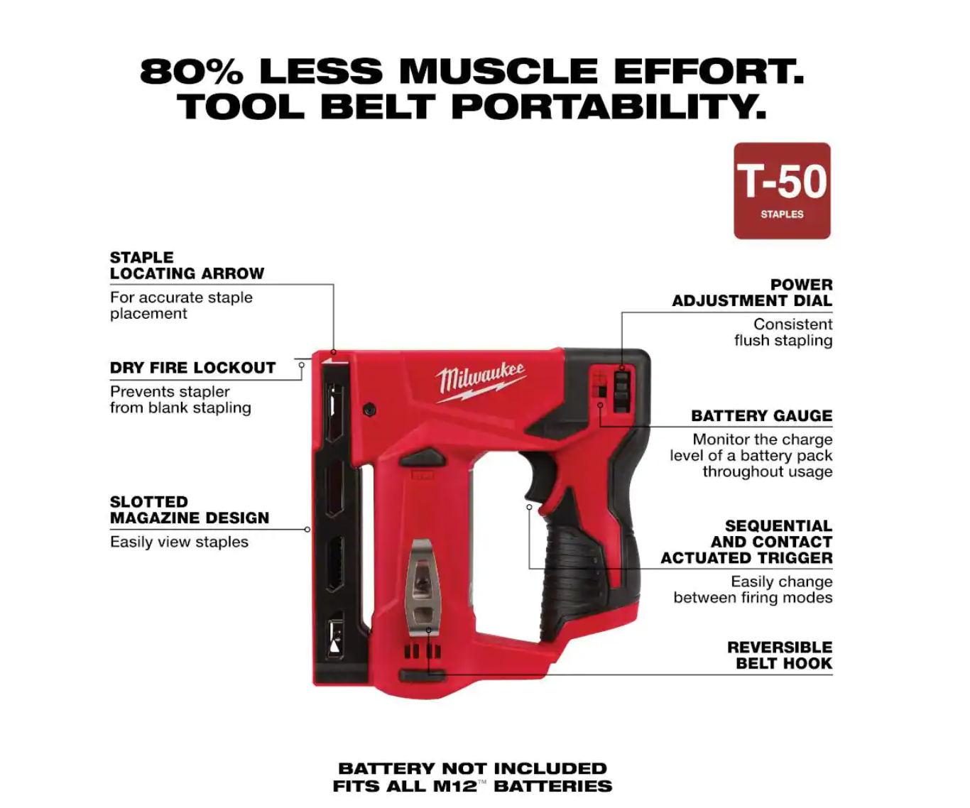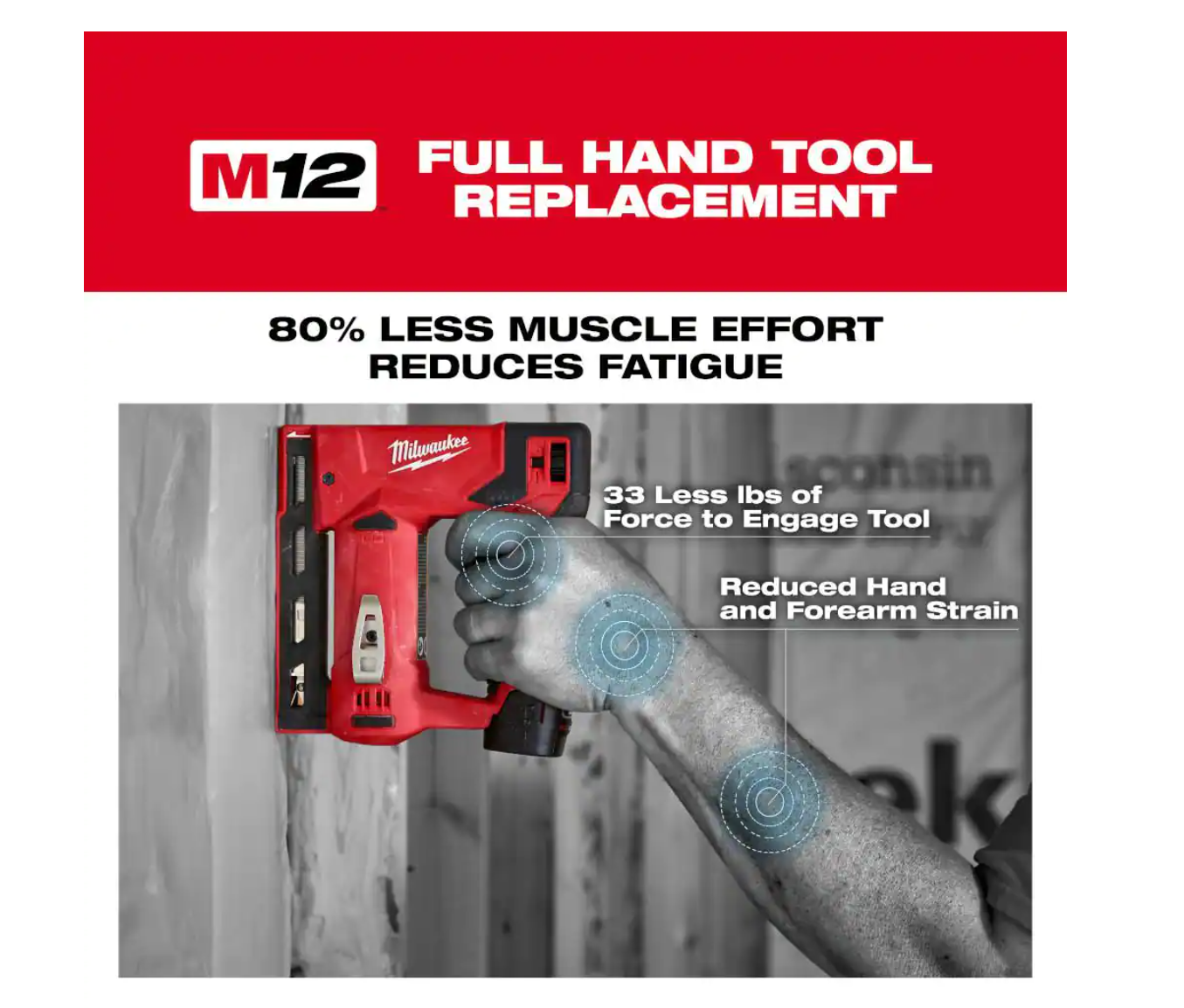 Milwaukee 2445-20-2447-20-48-11-2460 M12 12V Lithium-Ion Cordless Jig Saw with M12 3/8 in. Crown Stapler and 6.0 Ah XC Battery Pack
