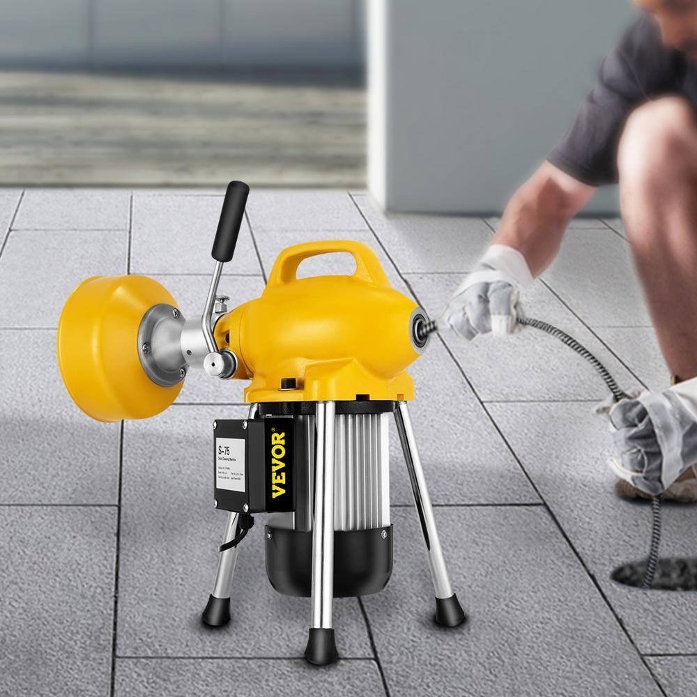 VEVOR HX-75BGPSTJ000001V1 66 ft. x 2/3 in. Electric Drain Auger 500-Watt Portable Drain Cleaner with 4 Cutters Tool fit 3/4 in. to 5 in. Pipe
