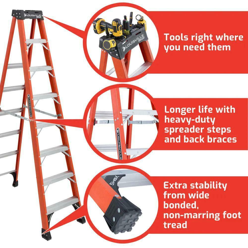 Louisville Ladder FS1408HD 8 ft. Fiberglass Step Ladder with 375 lbs. Load Capacity Type IAA Duty Rating