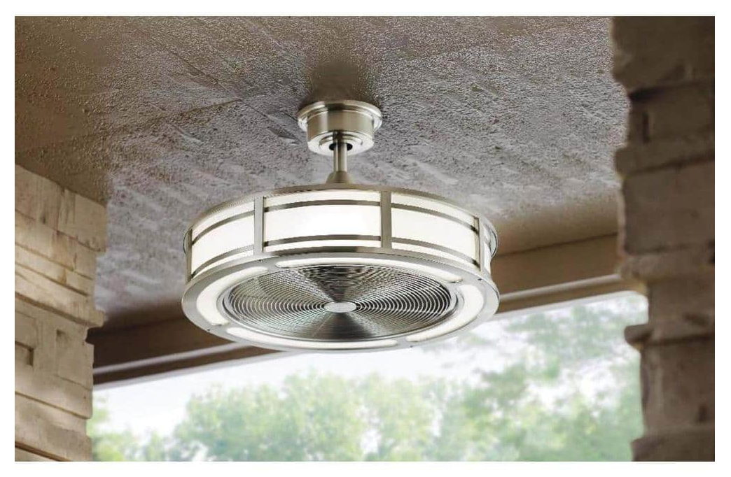 Home Decorators Collection AM382B-BN Brette II 23 in. LED Indoor/Outdoor Brushed Nickel Ceiling Fan with Light and Remote Control