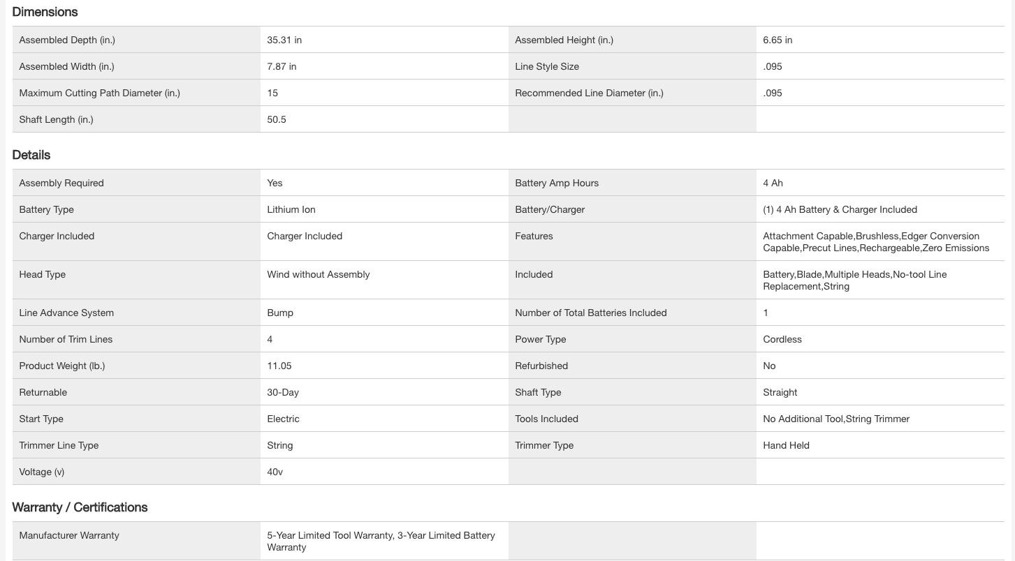 RYOBI RY40290VNM 40V HP Brushless 15 in. Cordless Carbon Fiber Shaft Attachment Capable String Trimmer with 4.0 Ah Battery and Charger
