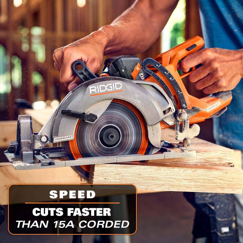 RIDGID R8657KN 18V Brushless Cordless 7-1/4 in. Circular Saw Kit with 4.0 Ah MAX Output Battery and Charger