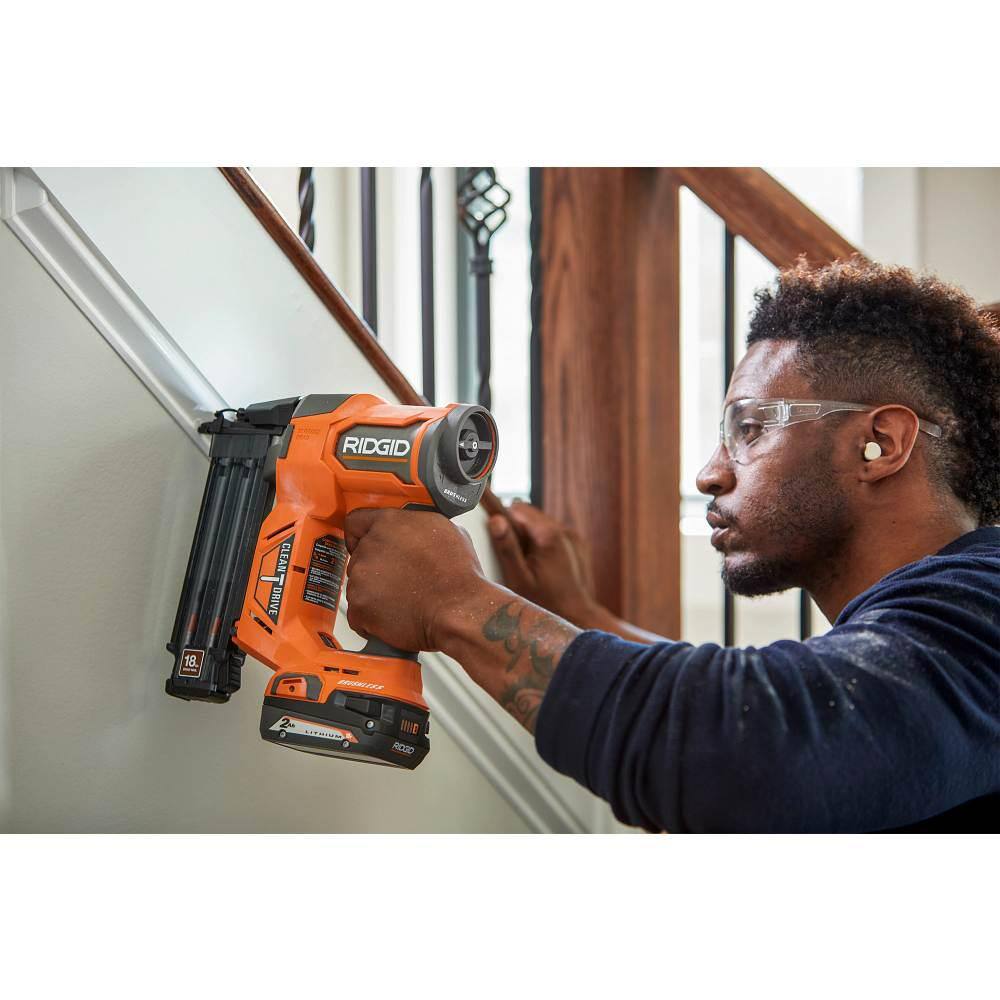 RIDGID R09891B-AC93044SBN 18V Brushless Cordless 18-Gauge 2-1/8 in. Brad Nailer with (2) 4.0 Ah Batteries. Charger. and Bag