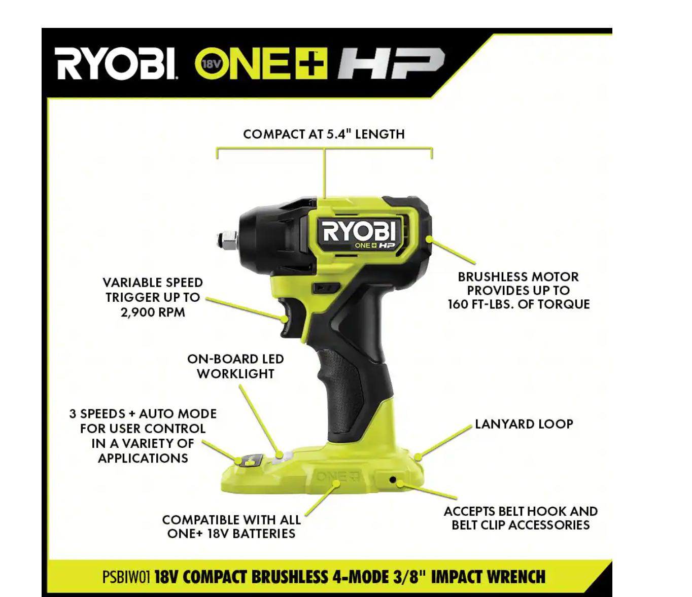 RYOBI PSBID01K-PSBIW01B ONE+ HP 18V Brushless Cordless Compact 1/4 in. Impact Driver. 3/8 in. Impact Wrench. (2) Batteries. Charger. and Bag