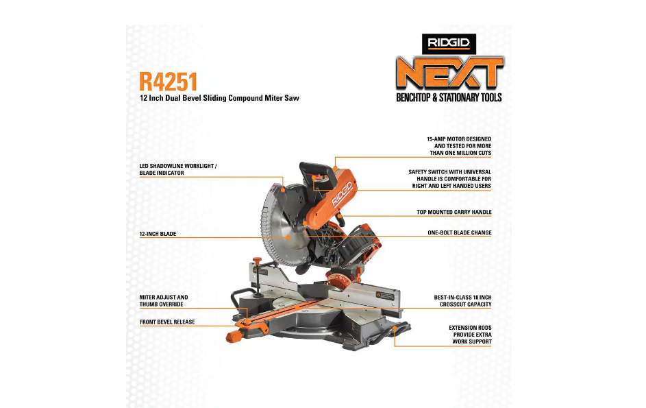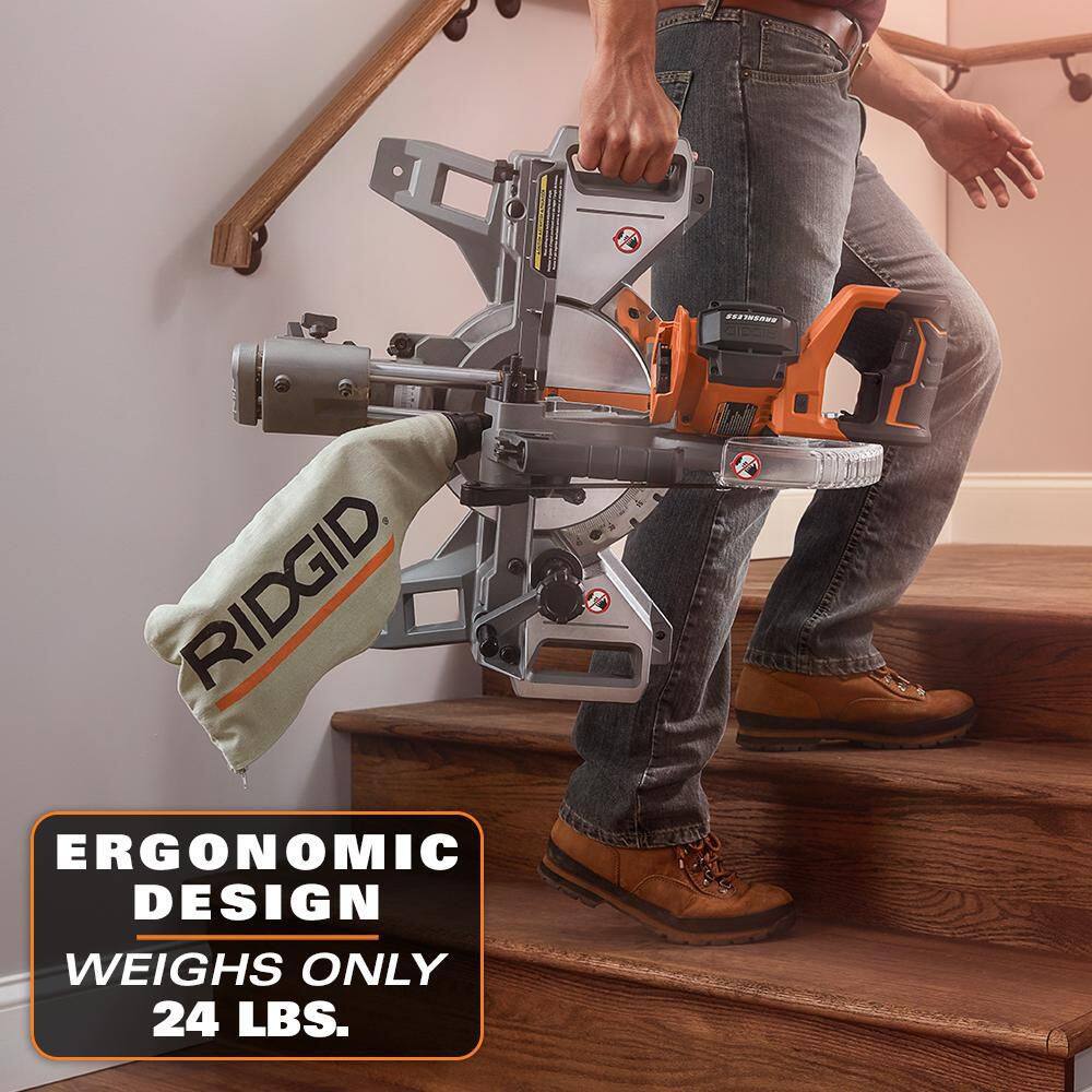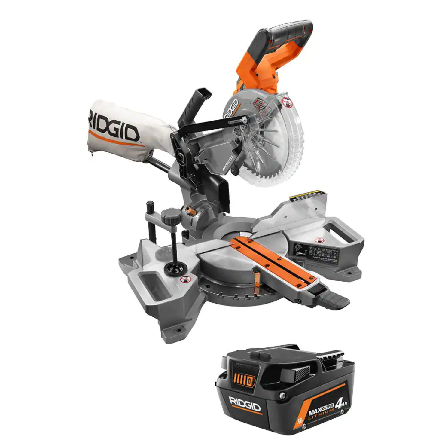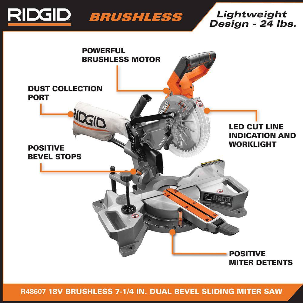 RIDGID R48607B-AC840040 18V Brushless 7-1/4 in. Dual Bevel Sliding Miter Saw with 18V 4.0 Ah MAX Output Lithium-Ion Battery