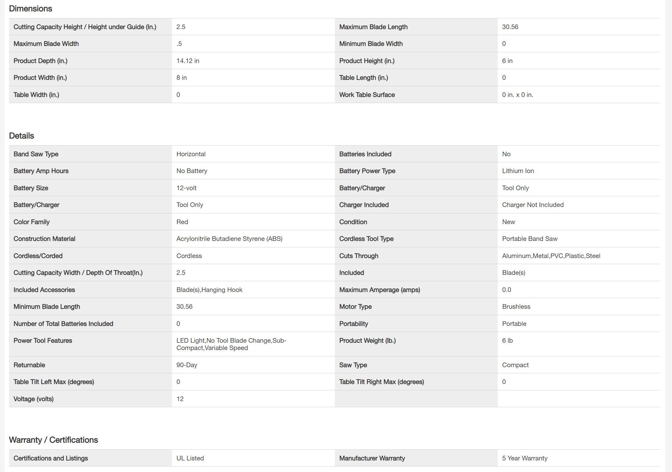 Milwaukee 2529-20 M12 FUEL 12V Lithium-Ion Cordless Compact Band Saw (Tool-Only)