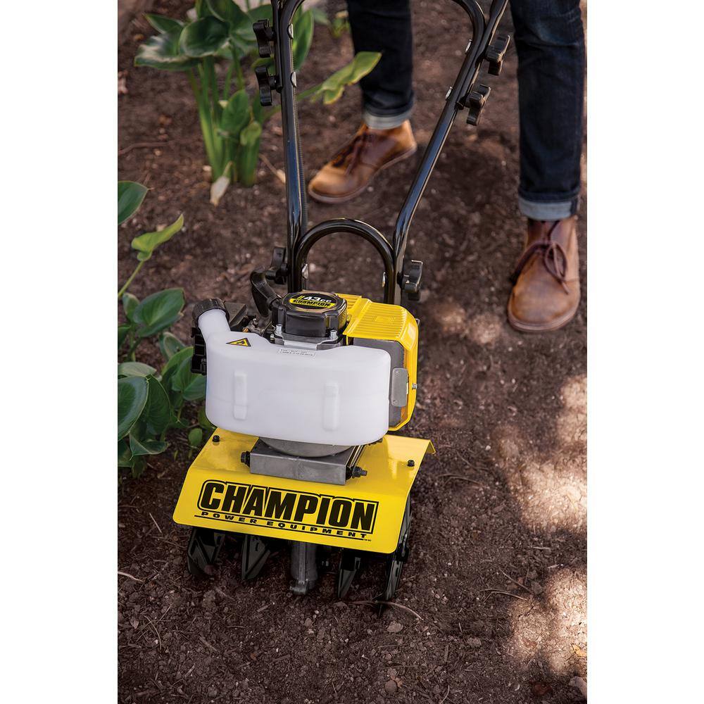 Champion Power Equipment 100882 9.5 in. 43 cc 2-Stroke Portable Gas Garden Tiller Cultivator with Adjustable Depth