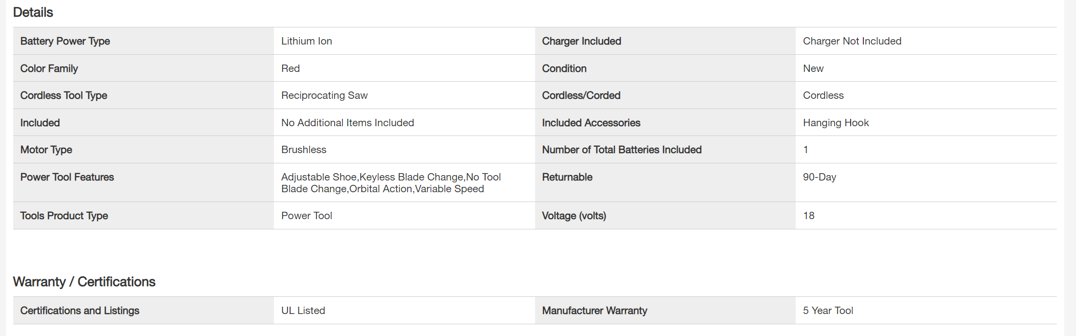 Milwaukee 2722-20-48-11-1850 M18 FUEL 18V Lithium-Ion Brushless Cordless SUPER SAWZALL Orbital Reciprocating Saw with M18 5.0 Ah Battery