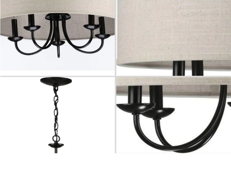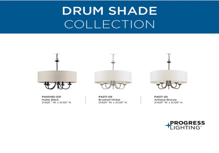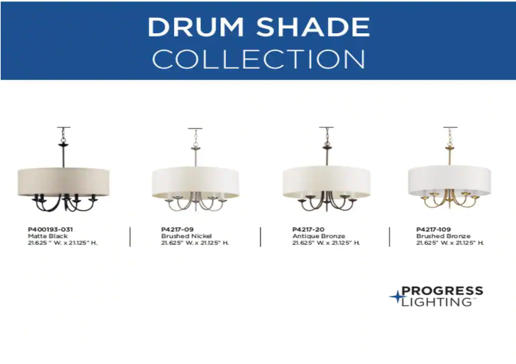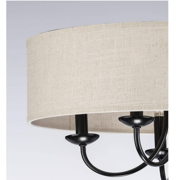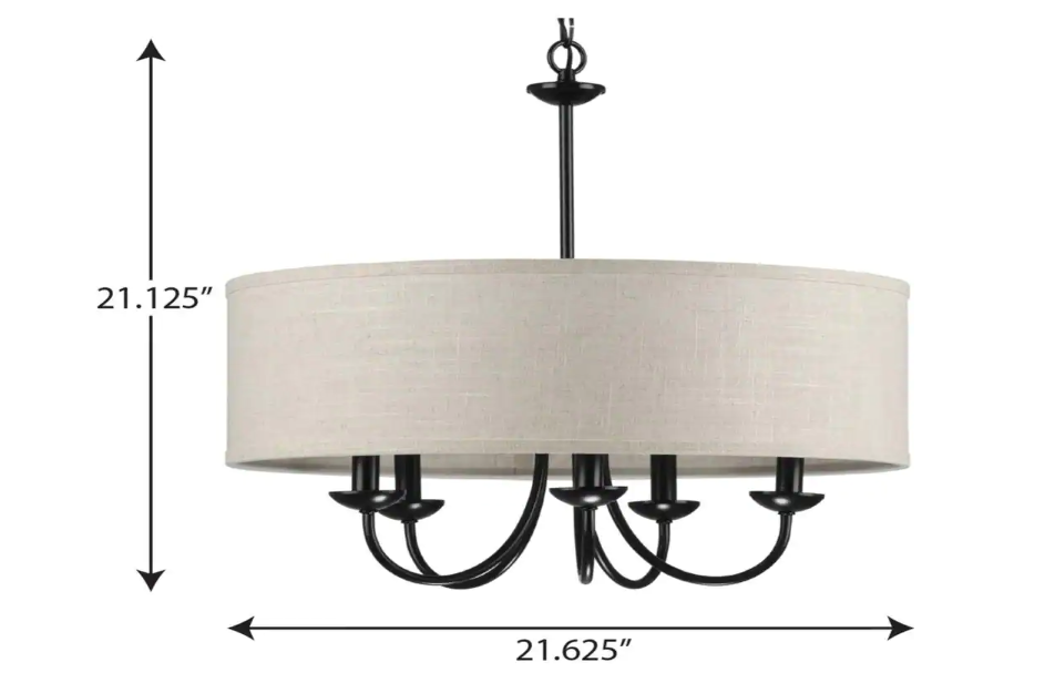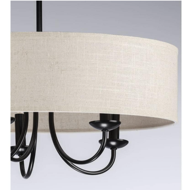 Progress Lighting P400193-031 Drum Shade Collection Farmhouse 21-5/8 in. 5-Light Matte Black with Harvest Linen Shade Chandelier Light
