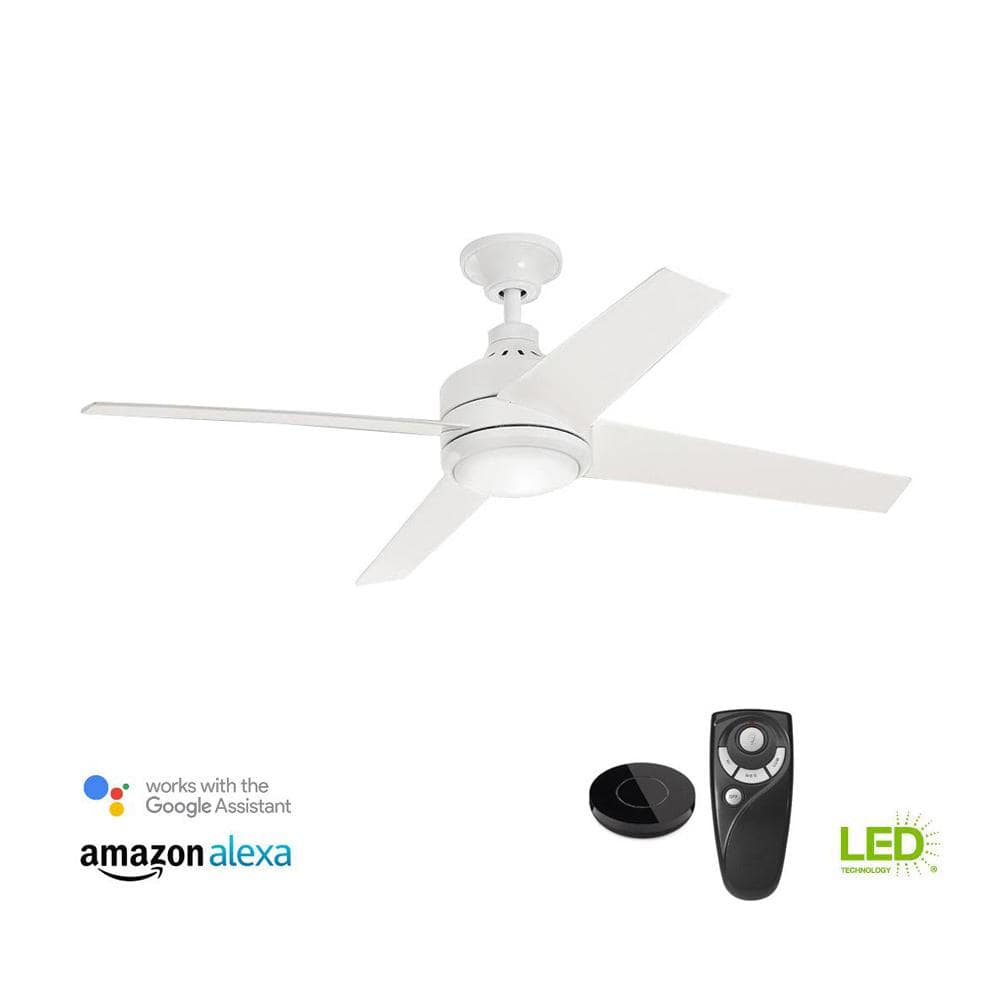 Home Decorators Collection 54727-BOND Mercer 52 in. Integrated LED Indoor White Ceiling Fan with Light Kit works with Google Assistant and Alexa