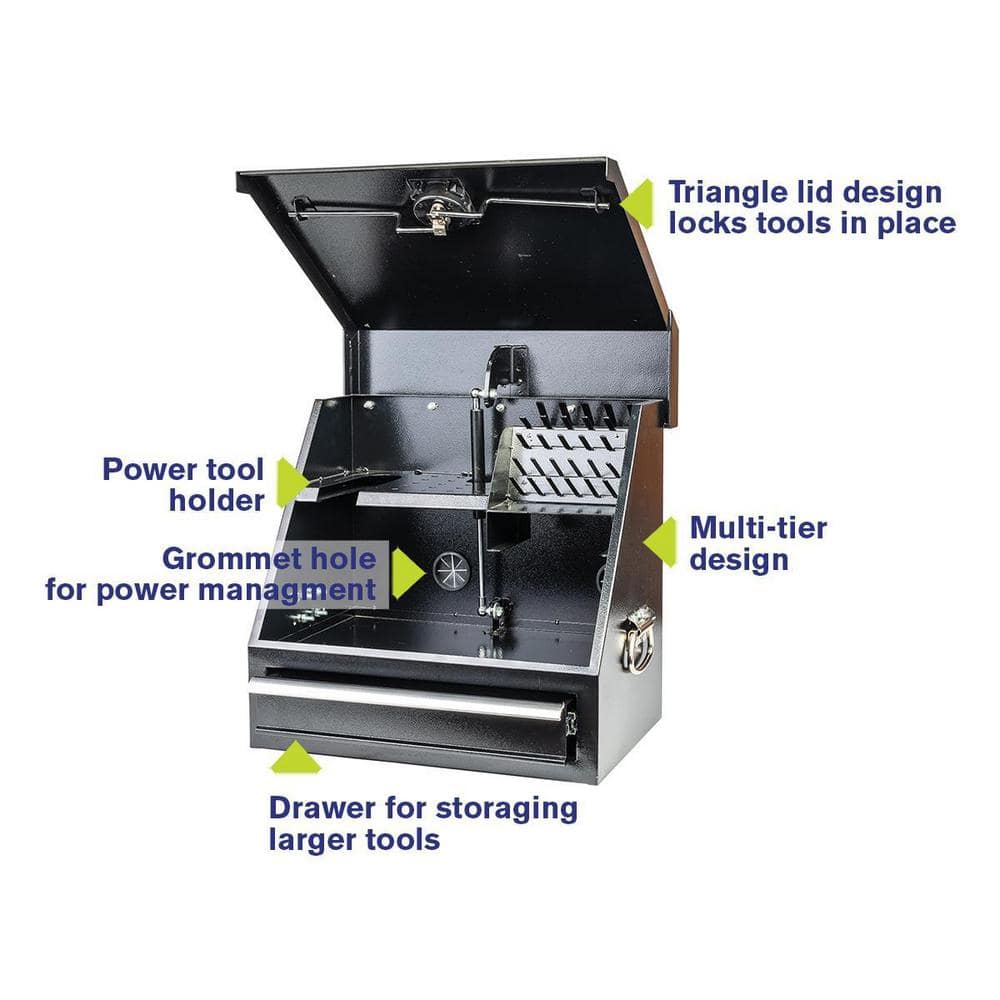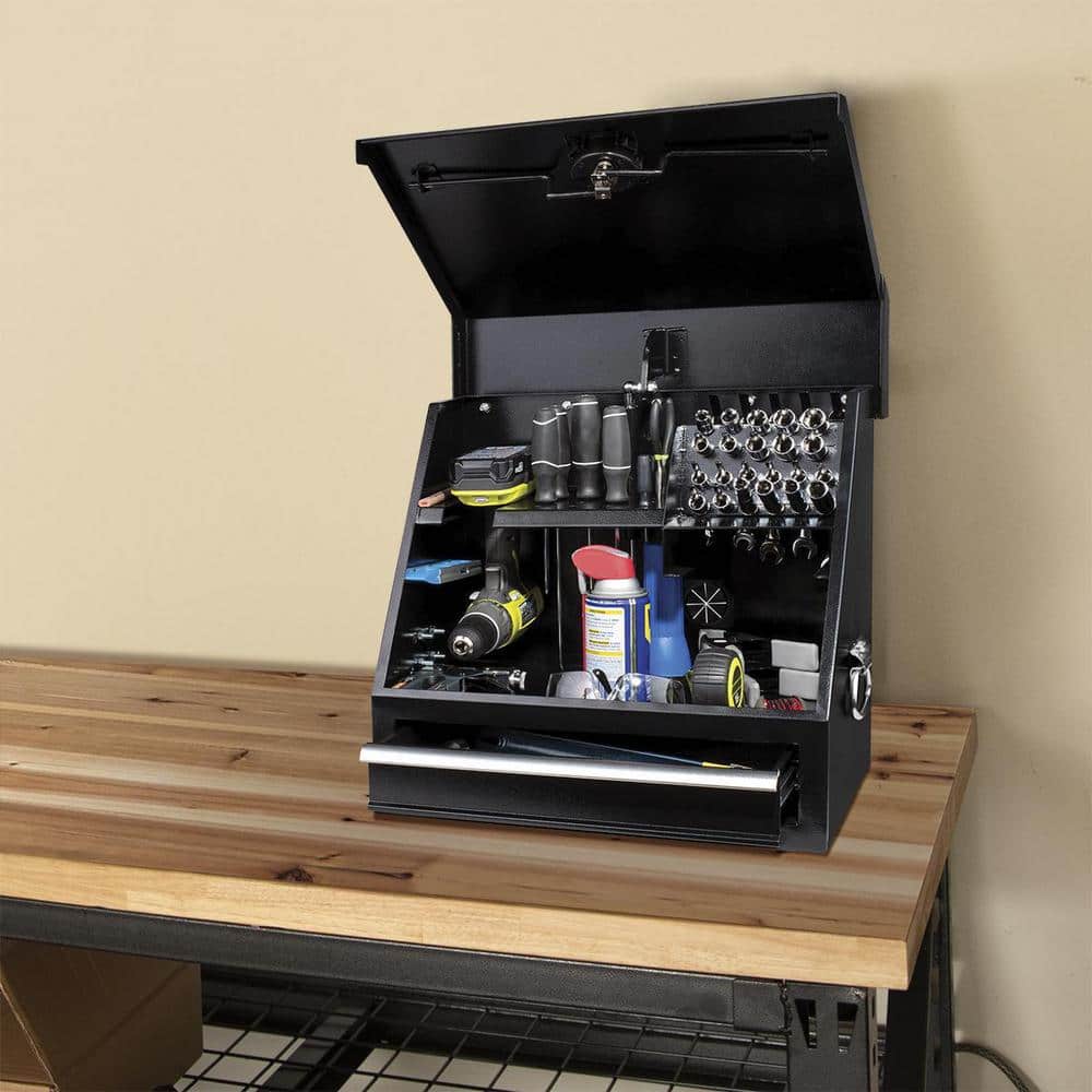 Montezuma SB180DB 18 in. W x 12 in. D 1-Drawer Black Steel Portable Shop Triangle Tool Box Chest for Sockets. Wrenches and Screwdrivers