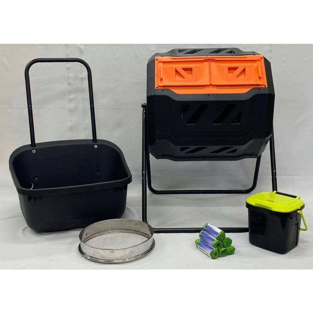 Bigbigmart GEN-C42-CSC 42 Gal. Dual Compost Tumbler with Cart. 141 oz. 16 in. Steel Compost Sifter and 1.85 Gal. Kitchen Caddie with Corn Bags