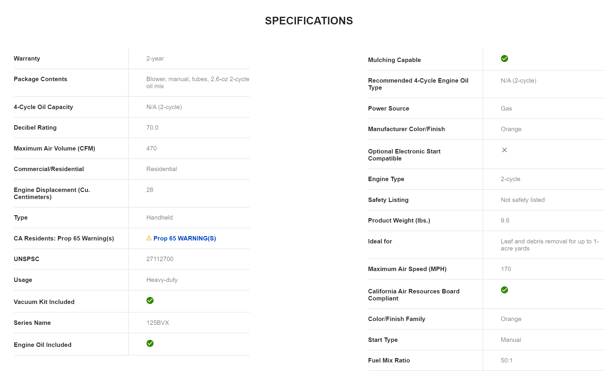 Husqvarna 125BVX 28-cc 2-Cycle 170-MPH 470-CFM Handheld Gas Leaf Blower with Vacuum Kit (952711902)