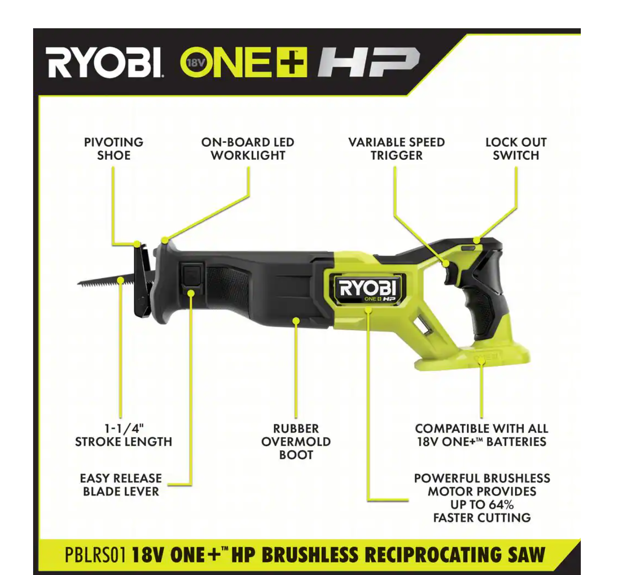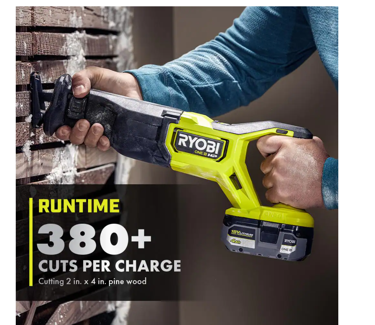 RYOBI PBLRS01K1-A233501 ONE+ HP 18V Brushless Cordless Reciprocating Saw Kit with 4.0Ah Battery. Charger & Reciprocating Saw Blade Set (35Piece)