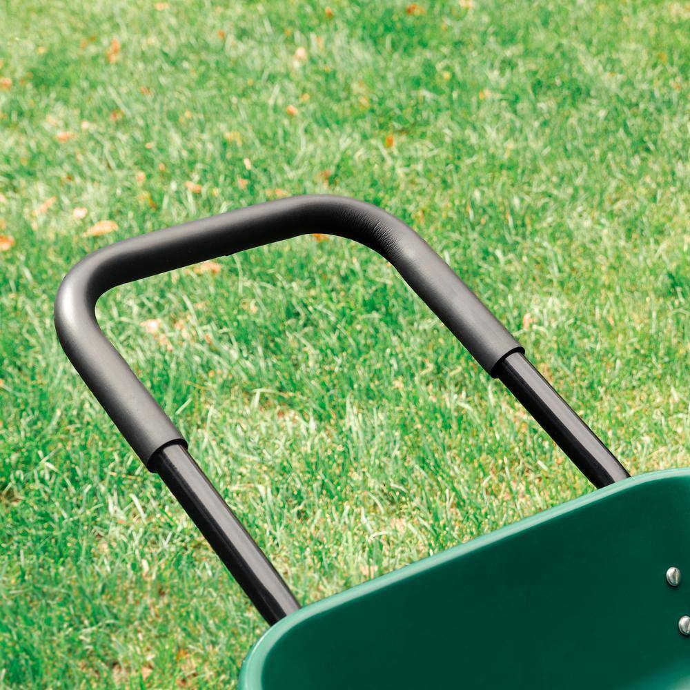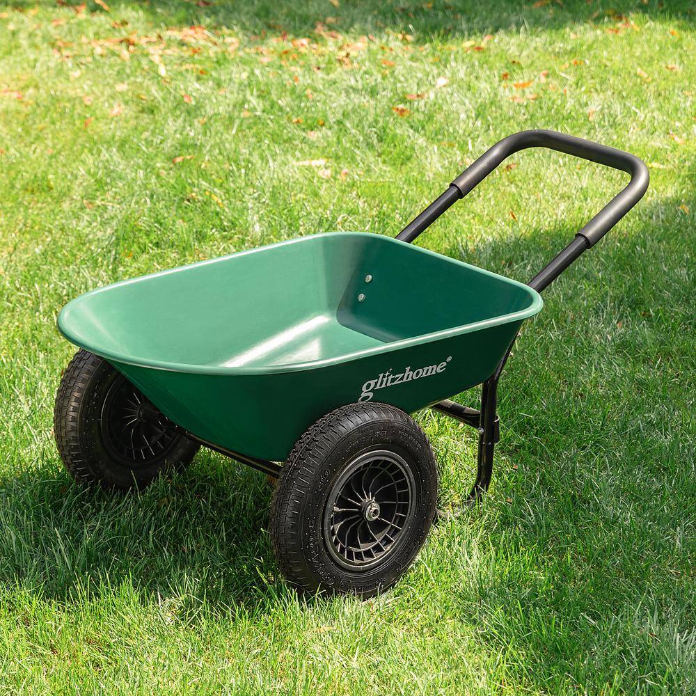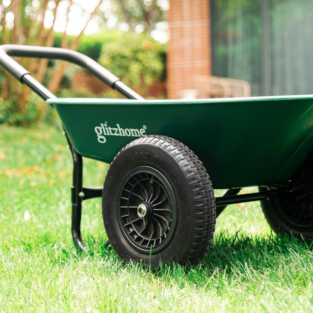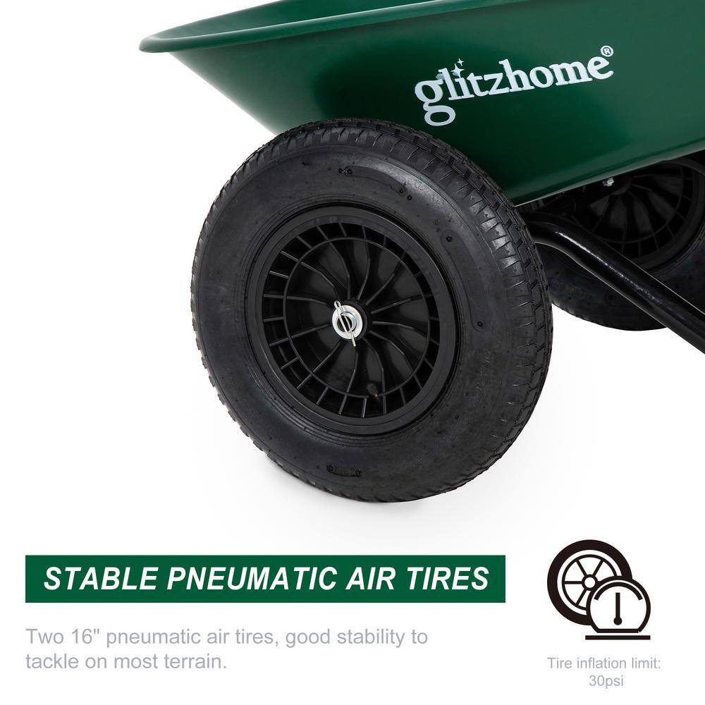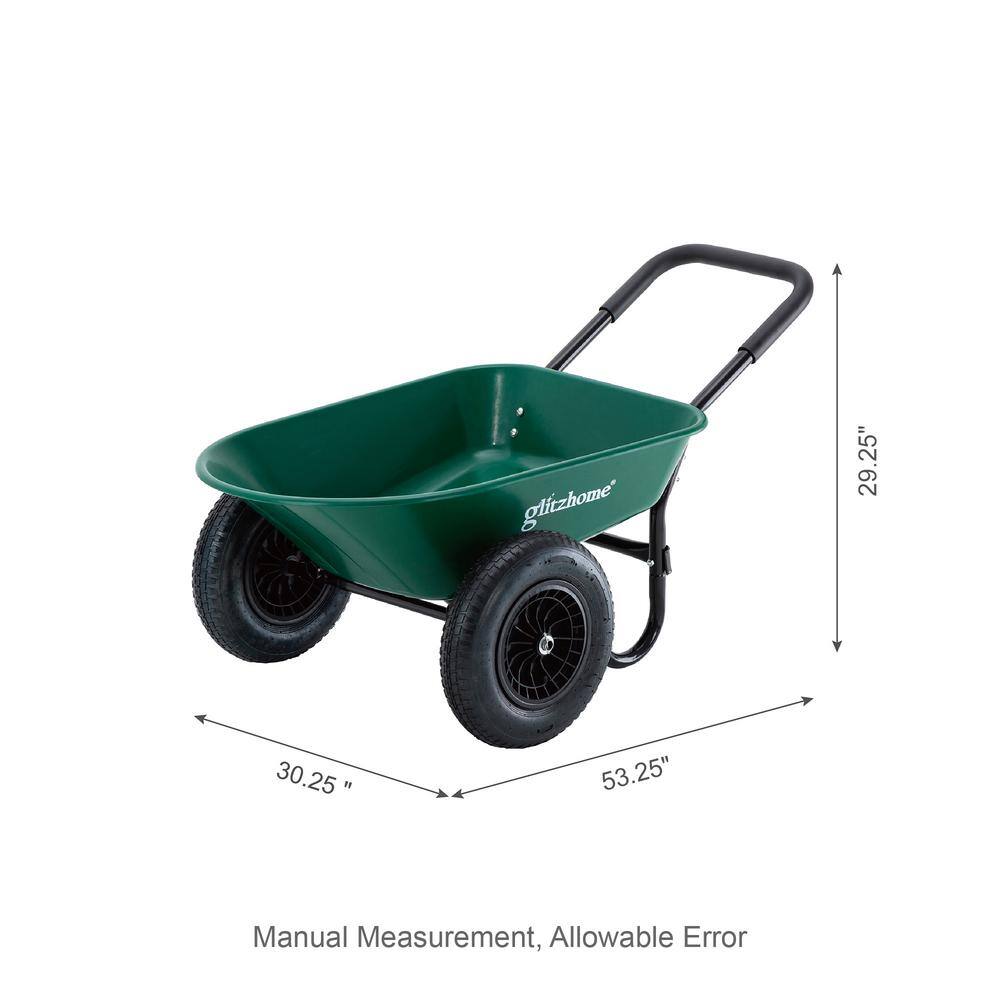Glitzhome 2003400003 5 cu. ft. Green Steel Framed Plastic Garden Dual-Wheel Utility Dump Cart