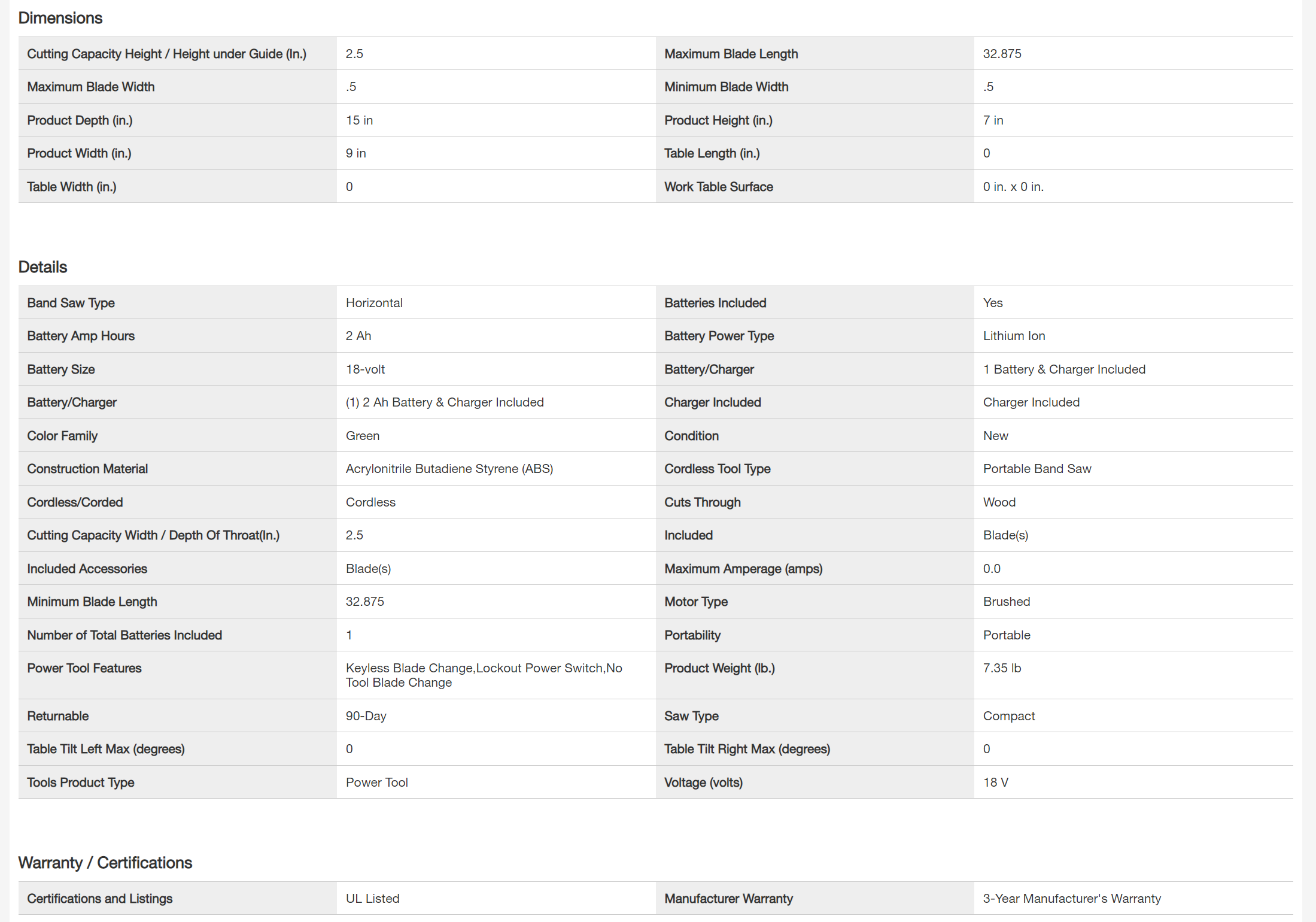 RYOBI P590-PSK005 ONE+ 18V Cordless 2-1/2 in. Compact Band Saw with 2.0 Ah Battery and Charger