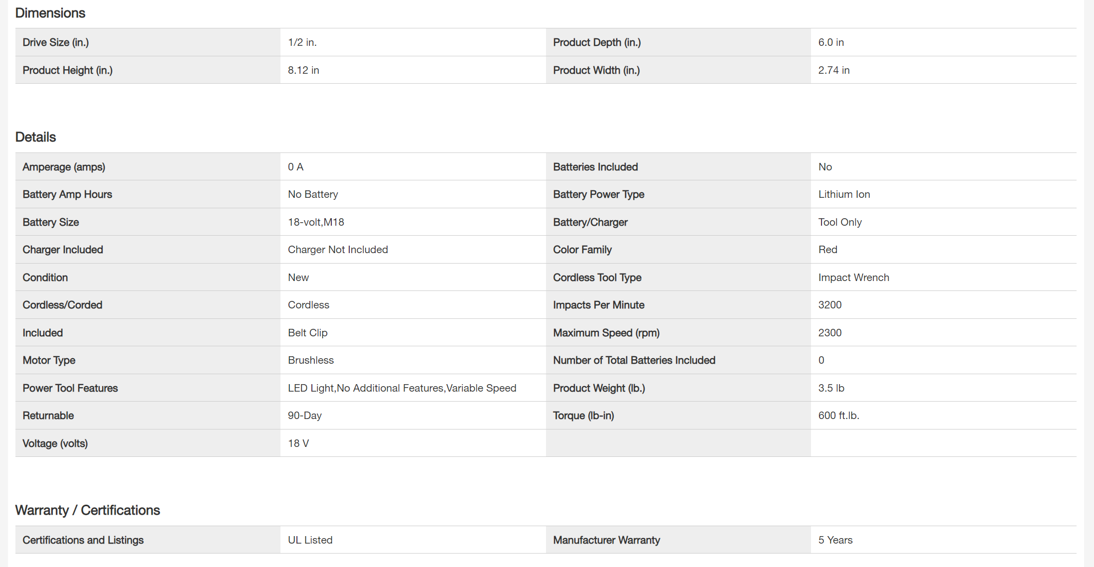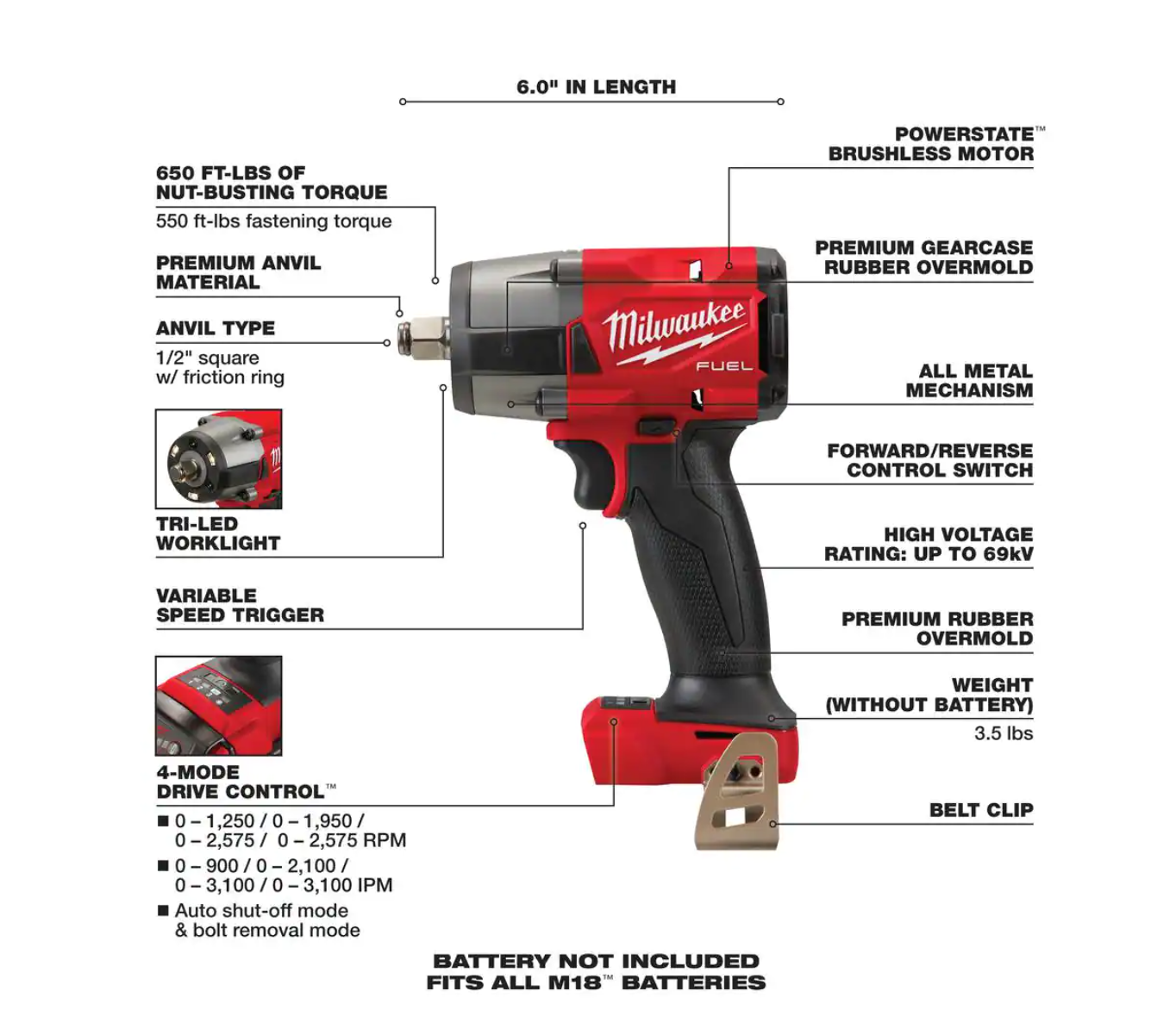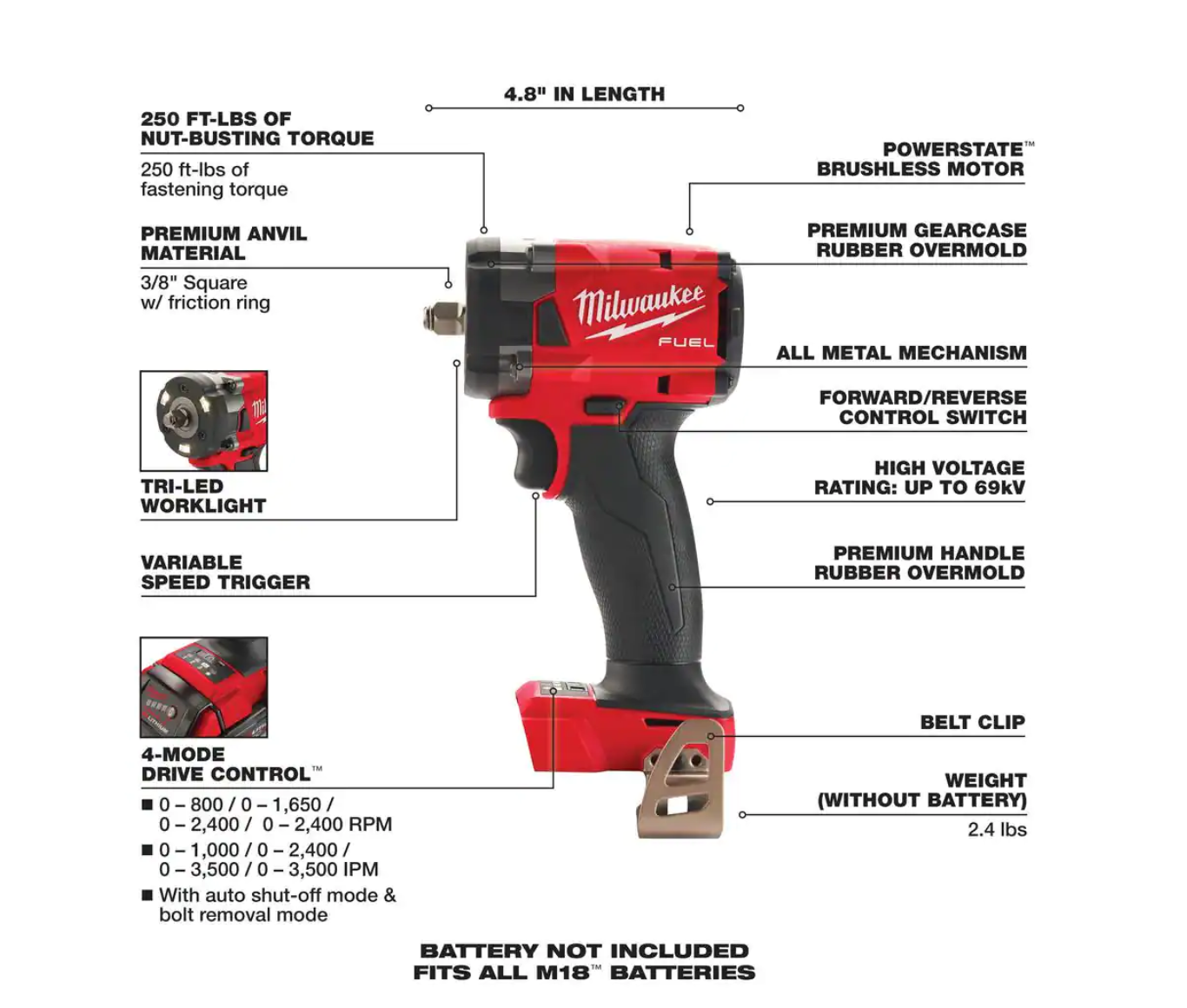 Milwaukee 2962-20-2854-20 M18 Impact Wrench Gen-2 18-Volt Li-Ion Cordless Mid Torque w/Friction Ring