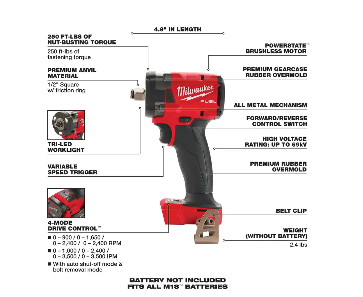 Milwaukee 2855-20-49-16-2854 M18 FUEL Gen-2 18V Lithium-Ion Brushless Cordless 1/2 in. Compact Impact Wrench with Friction Ring and Boot