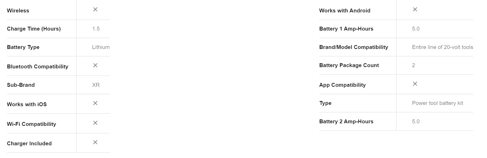 DEWALT DCB205-2 XR 20-Volt Max 2-Pack 5 Amp-Hour; 5 Amp-Hour Lithium Power Tool Battery Kit