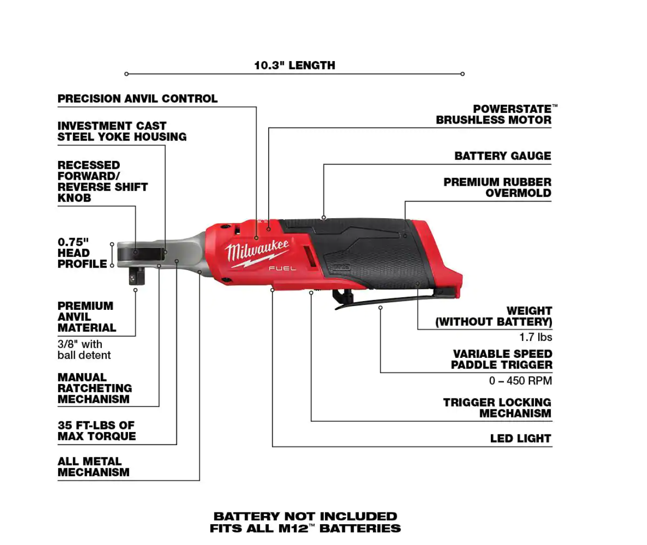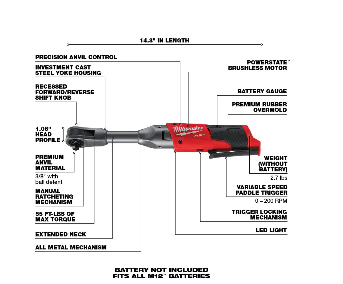 Milwaukee 2554-20-2567-20-2560-20 M12 FUEL 12V Li-Ion Cordless 3/8 in. Impact Wrench w/3/8 in. High Speed Ratchet and 3/8 in. Extended Reach Ratchet
