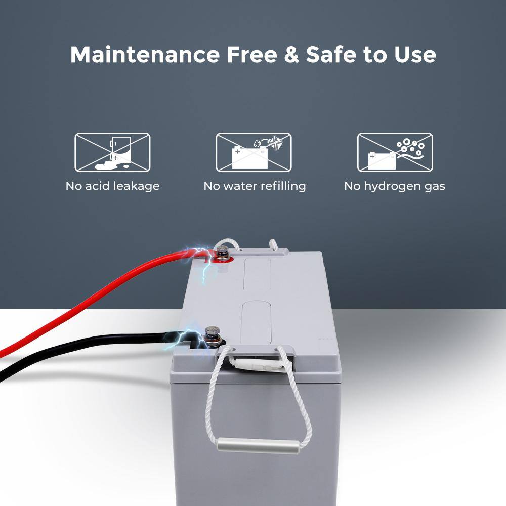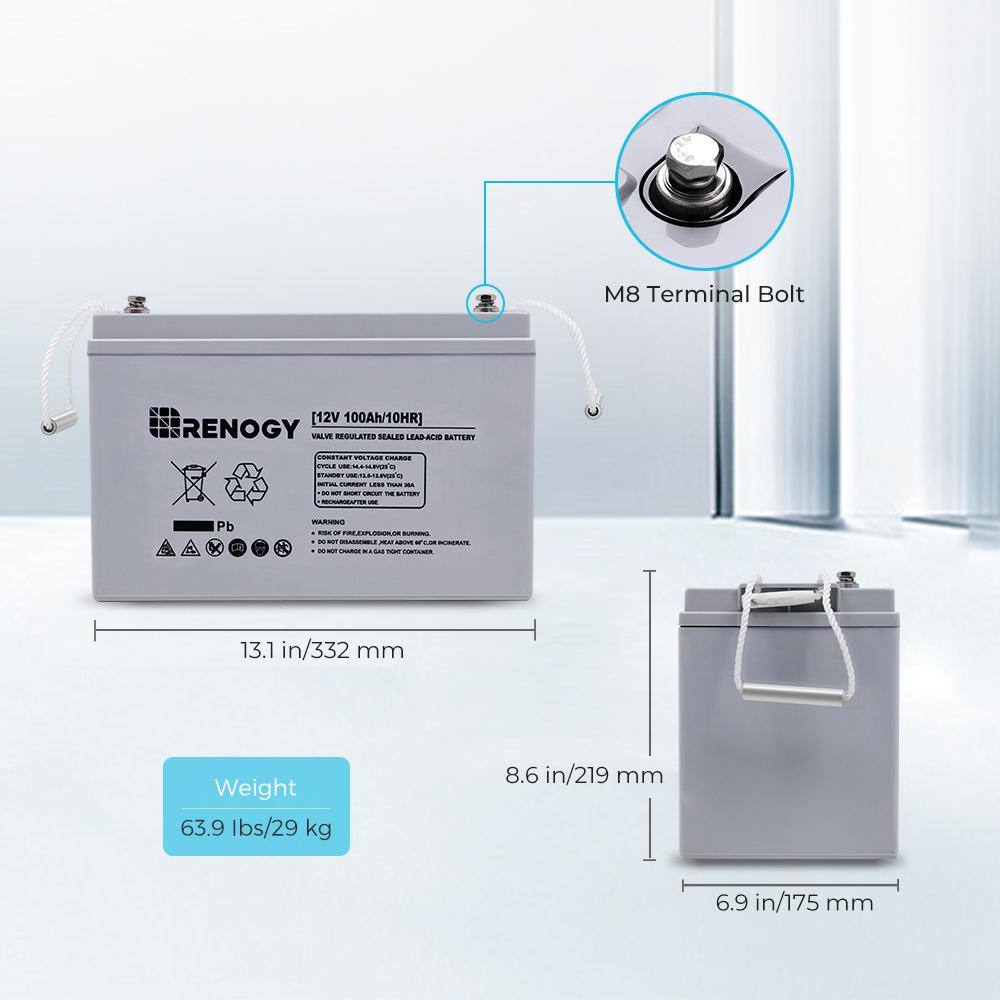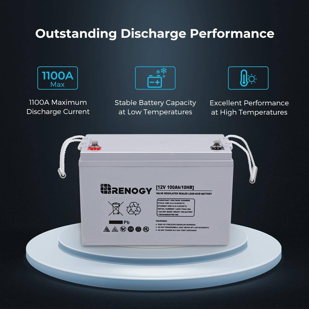 Renogy RBT100AGM12B Deep Cycle AGM Battery 12-Volt 100Ah w/ Box Safe Charge Most Home Appliances for Off-Grid Solar System. Maintenance-Free