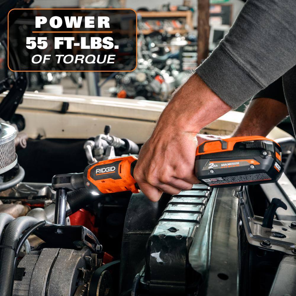 RIDGID R866010K 18V Brushless Cordless 1/4 in. Ratchet Kit with 2.0 Ah Battery and Charger