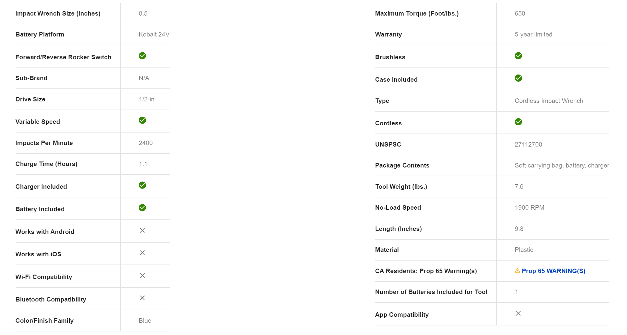 Kobalt KIW 1524A-03 24-volt Max Variable Speed Brushless 1/2-in Drive Cordless Impact Wrench (1-Battery Included)