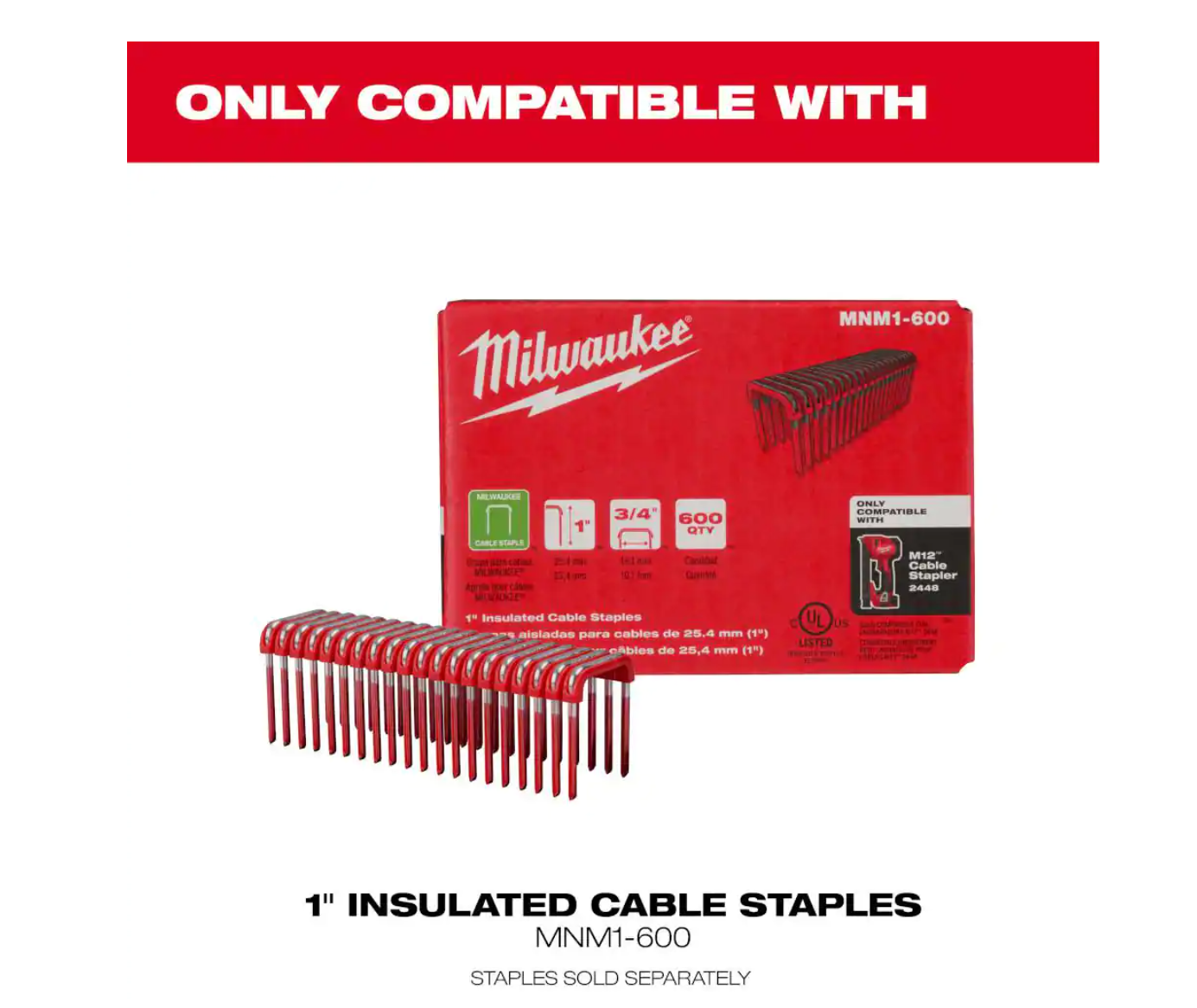 Milwaukee 2448-20 M12 12-Volt Lithium-Ion Cordless Cable Stapler (Tool-Only)