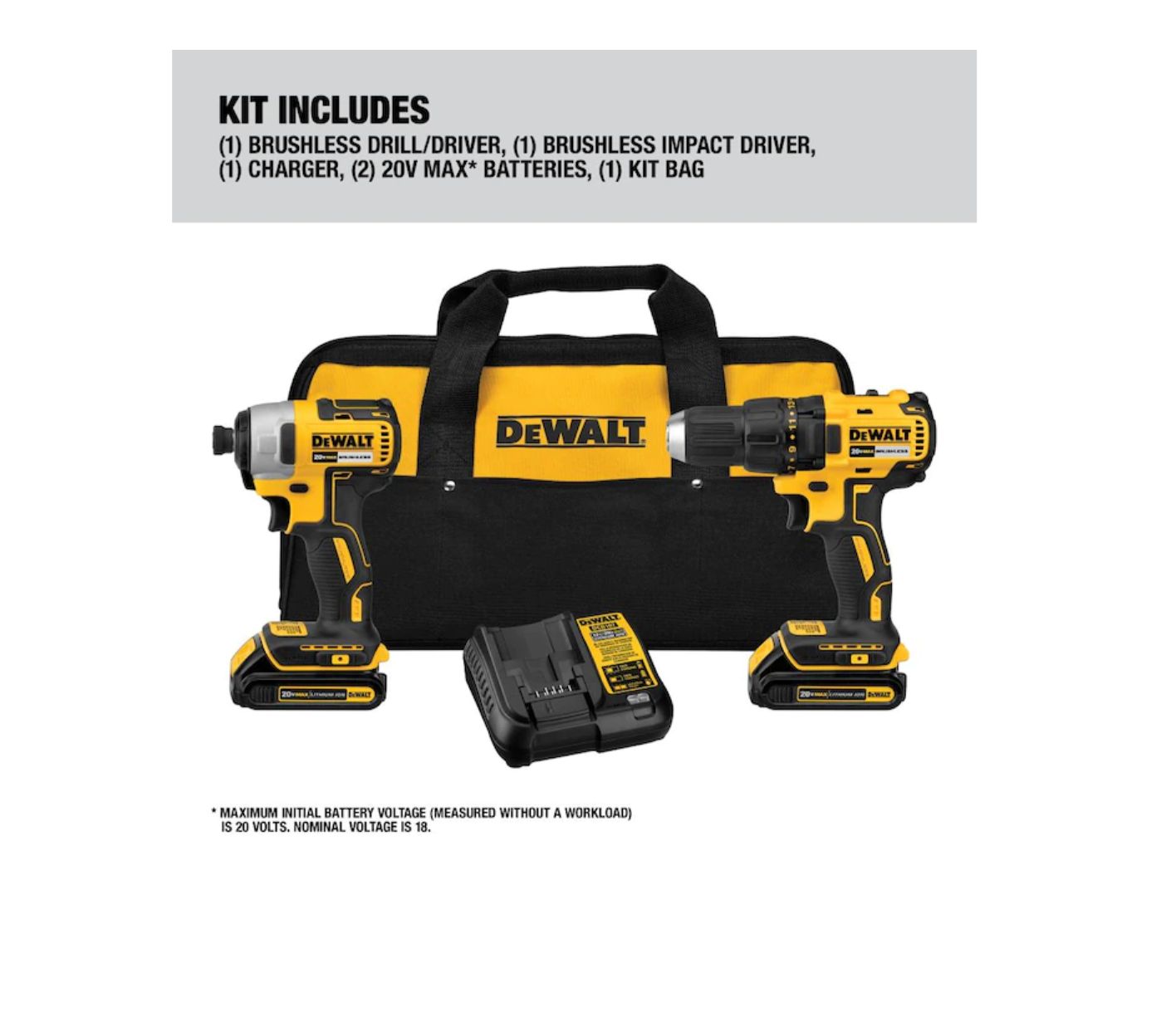 DEWALT DCK277C2 2-Tool 20-Volt Max Brushless Power Tool Combo Kit with Soft Case (2-Batteries and charger Included)